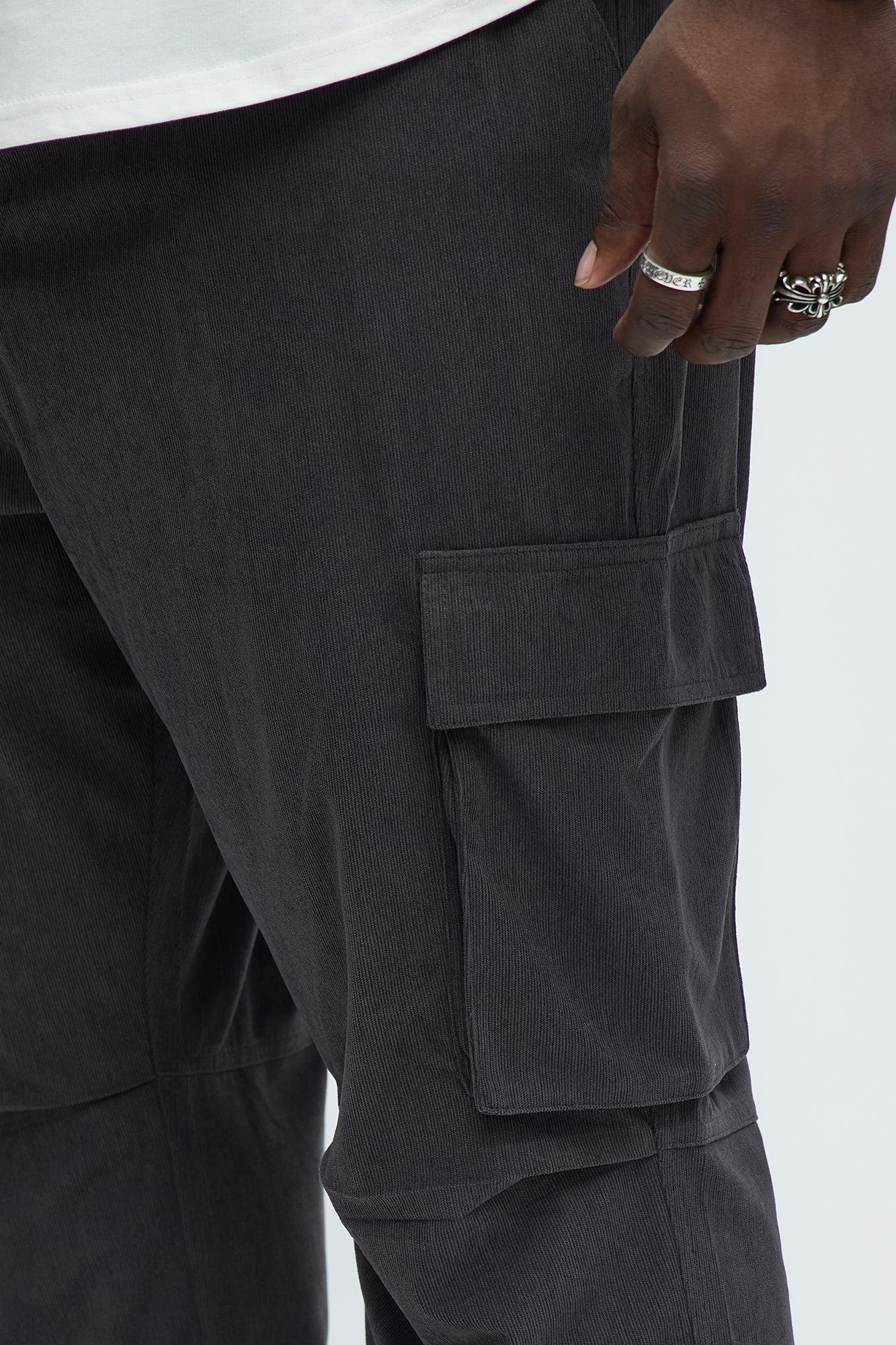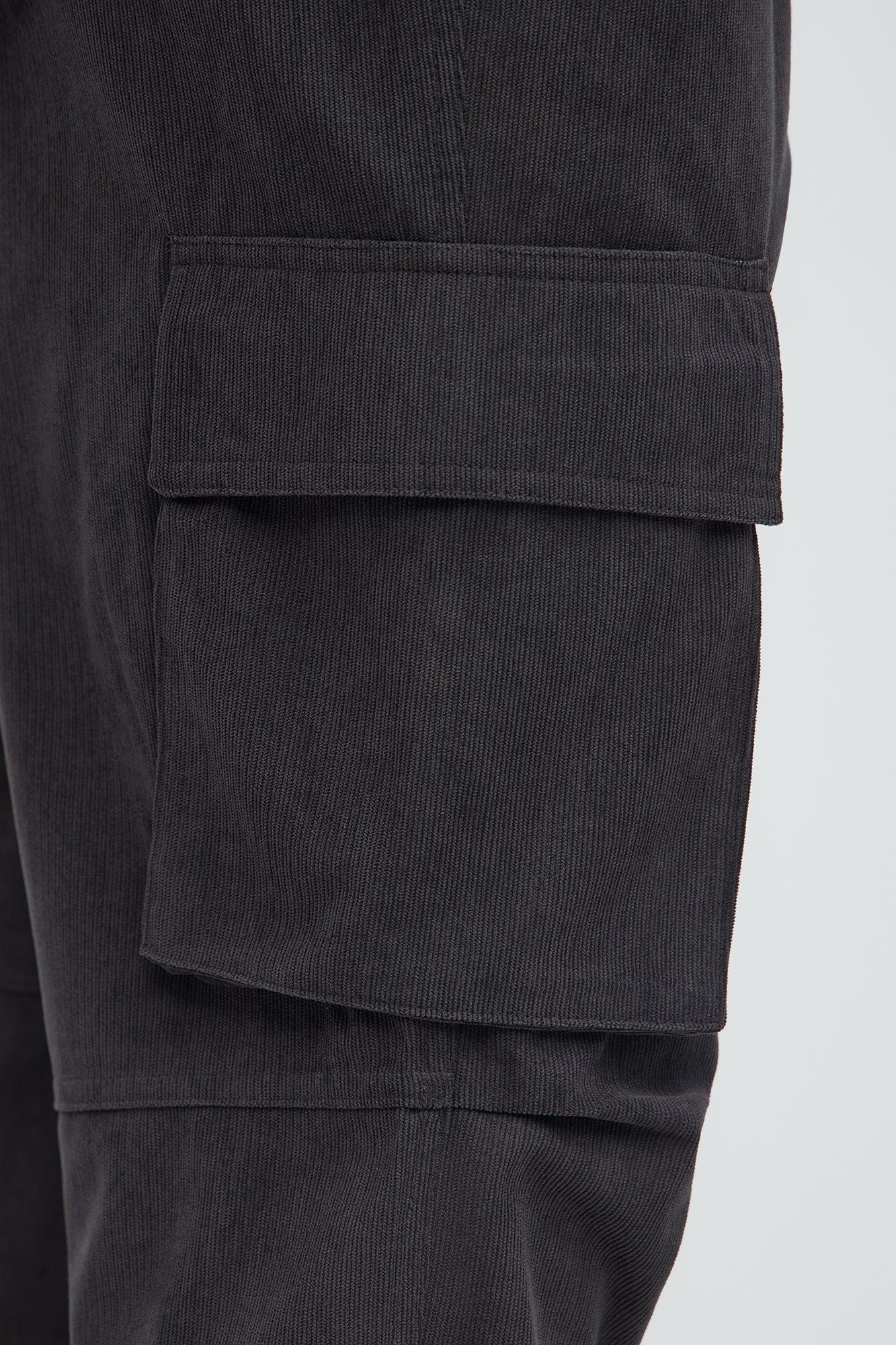 Bedford Corduroy Slim Cargo Pants - Charcoal