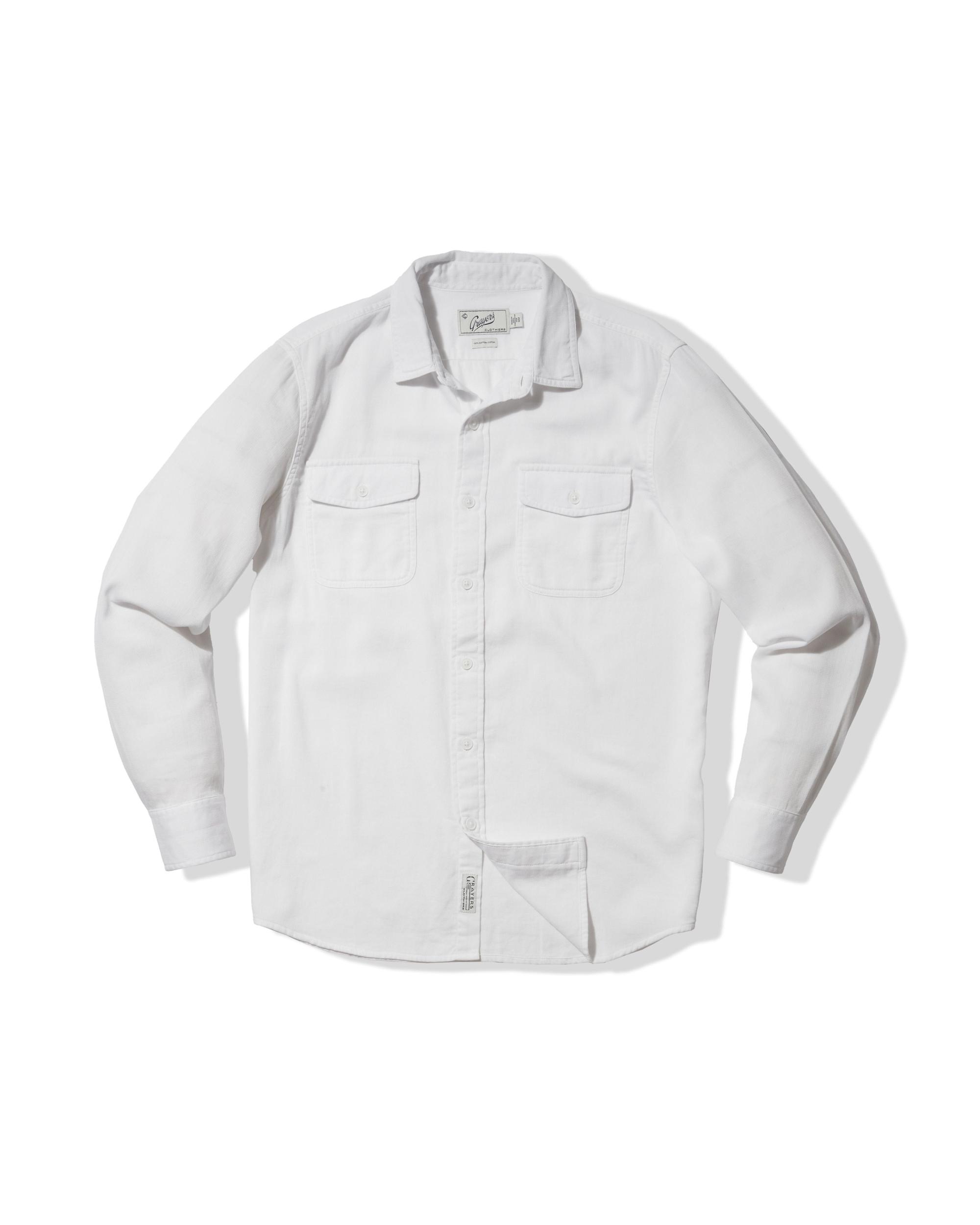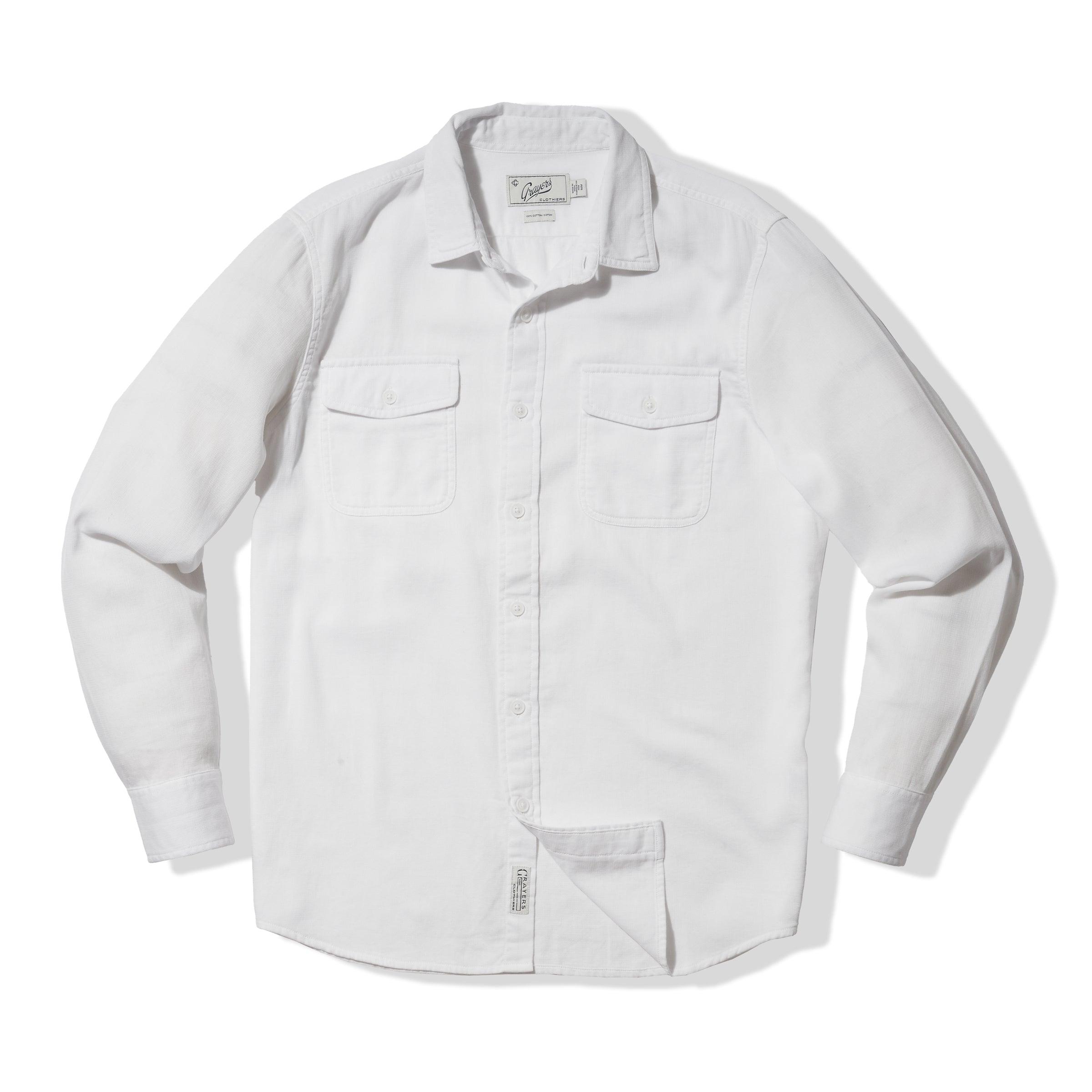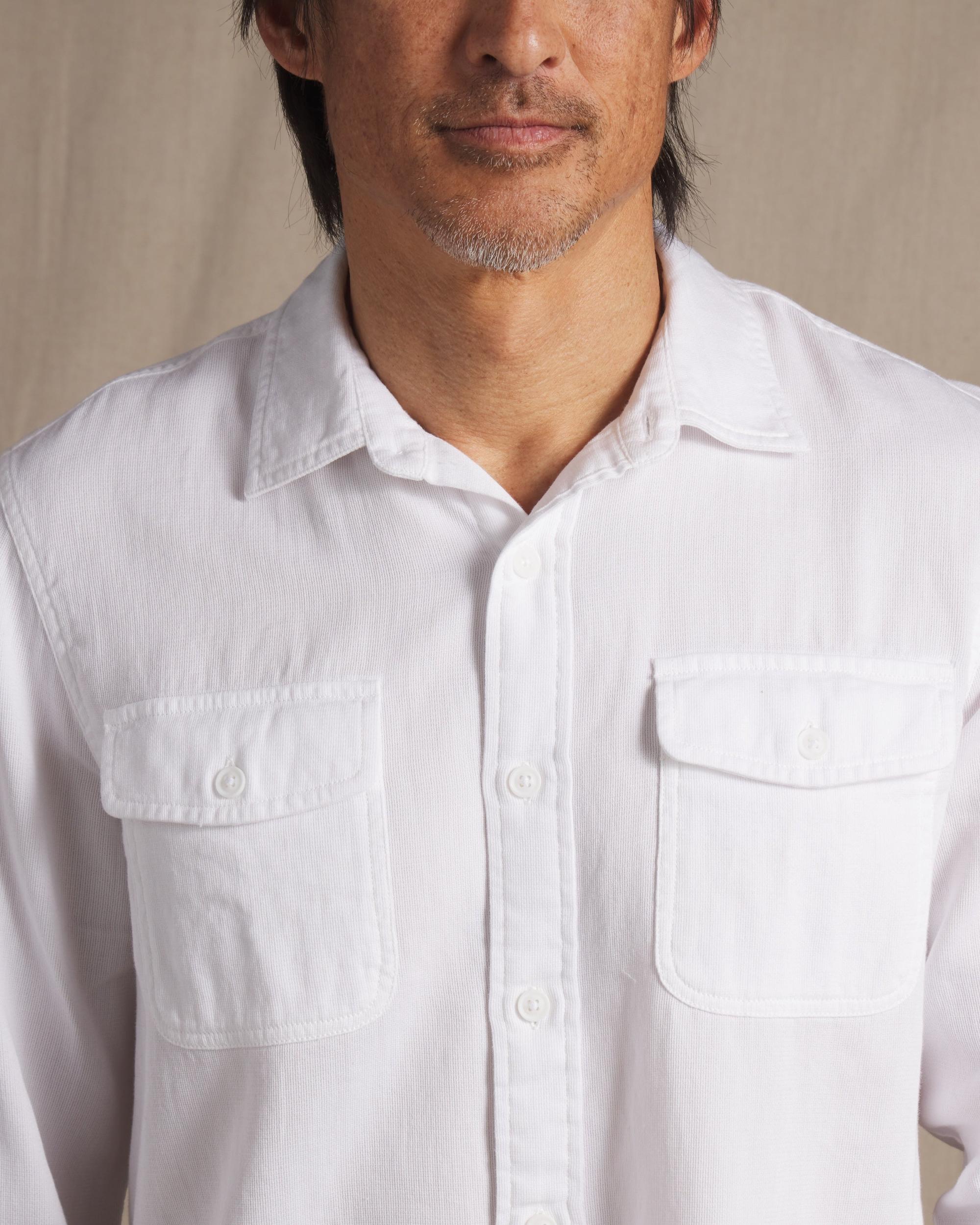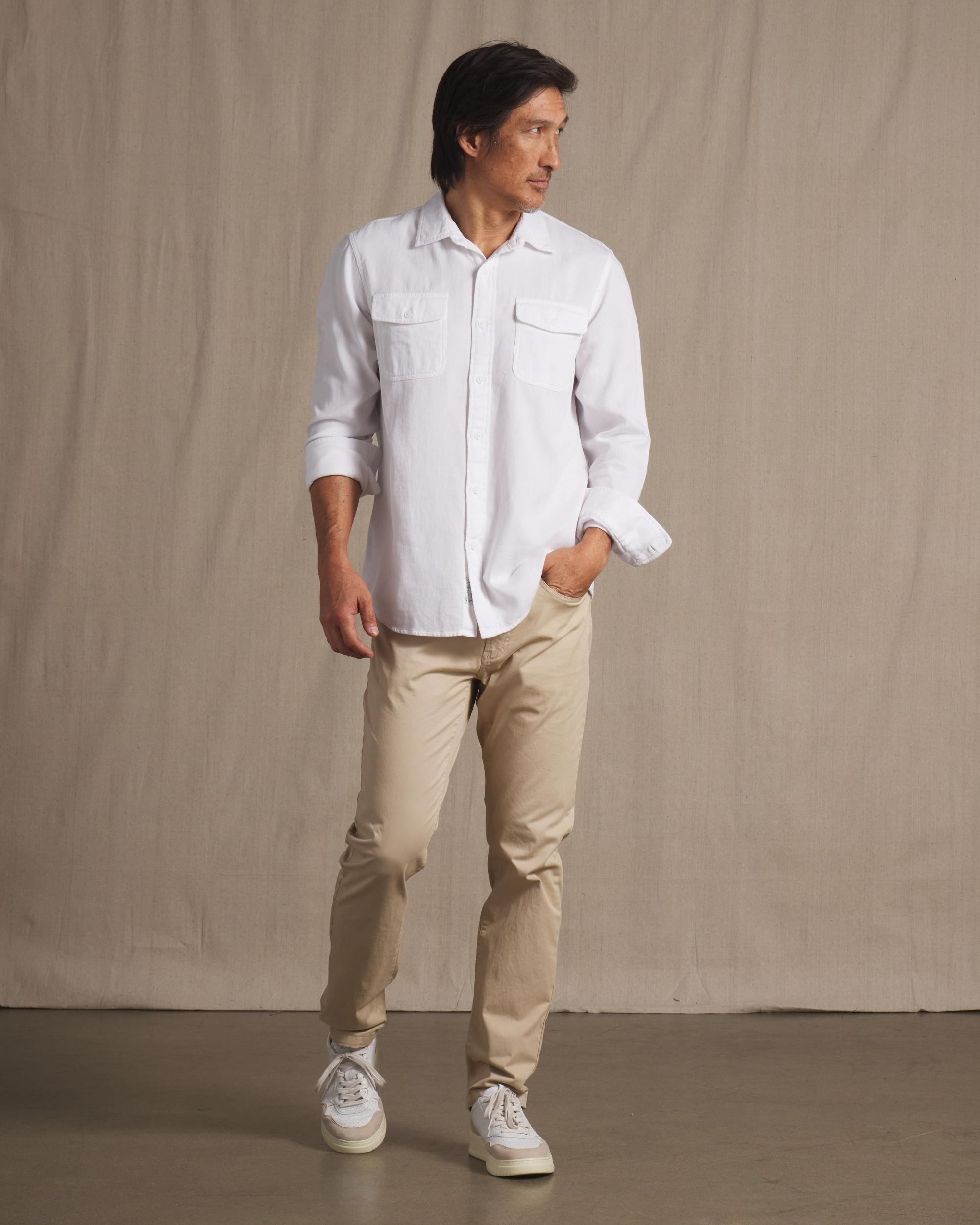 This ideal year-round shirt, made with a mid-weight textured rib fabric, using premium cotton yarn, has the versatility of spring workshirt that can be worn through the summer months. We've taken the extra step of over-dyeing these shirts in wearable seasonal colors that will carry you through the months of spring. The Model is also wearing: Alternative Stretch Slim Fit 5 Pocket - Pebble. Model: Adrian is wearing size medium and is 6'. ----Details---- Workshirt body with two button through flap pockets Garment dyed & enzyme washed Premium weave in textured rib fabric Spread collar Imported ----Materials---- 100% Cotton ----Size & Fit---- Measuring Method: All measurements are in inches and based on a flat garment, as shown below. For comparison with one of your existing garments, please lay garment on a flat surface and follow the key measurement points. For chest and neck, if you double the flat measurement, you will get close to the full body measurement. ----Care---- Machine Wash Cold Separately Do Not Soak Before Washing Do Not Bleach Remove Promptly Tumble Dry Low Or Hang Dry In Shaded Area Cool Iron If Necessary
