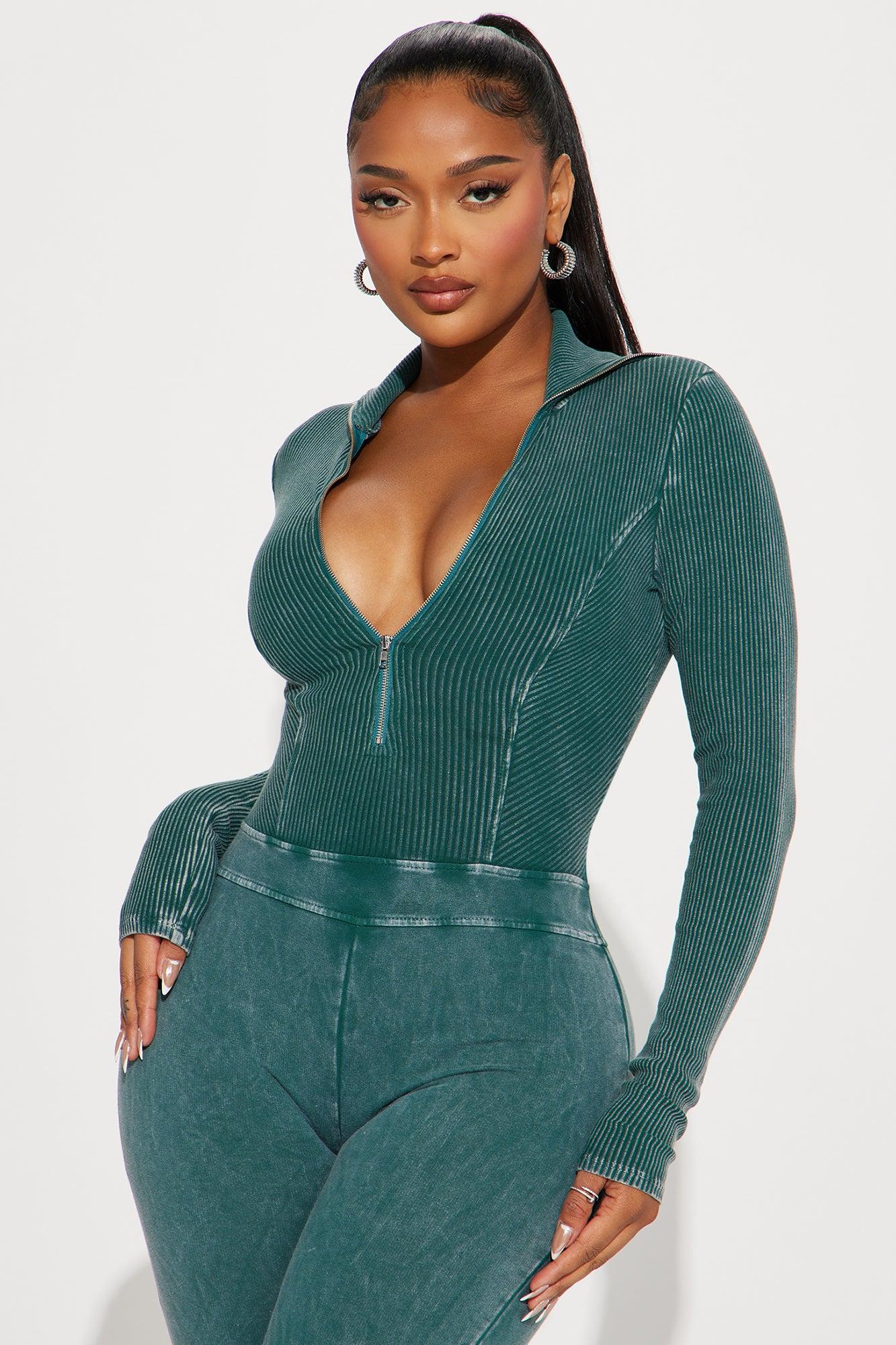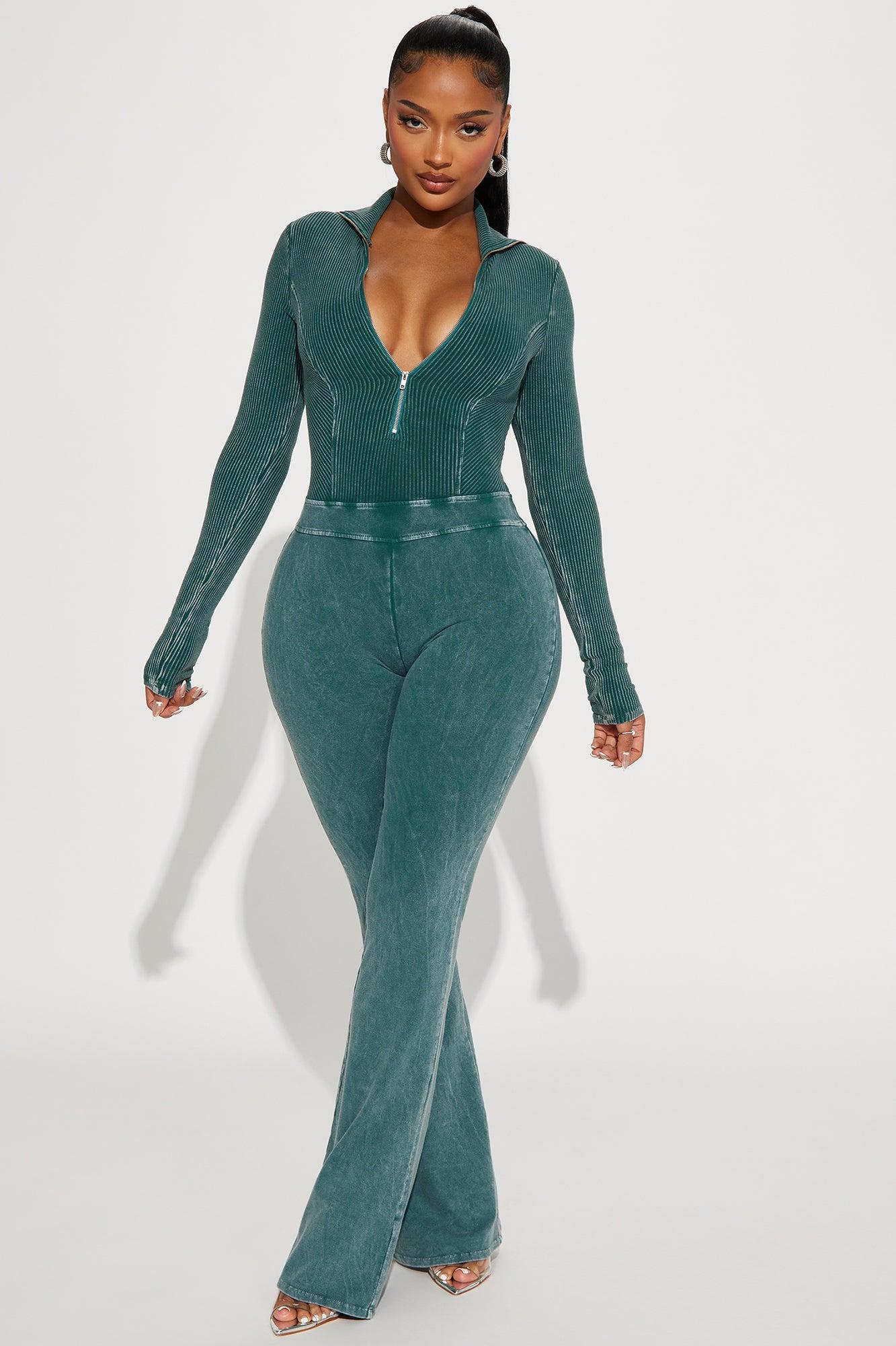 Available In Black And Hunter. Jumpsuit Collar Long Sleeve Front Zipper Wide Leg Stretch Disclaimer: Due To The Specialized Wash. Each Garment Is Unique. Self: 97% Cotton 3% Spandex Contrast: 94% Cotton 6% Spandex Imported California Proposition 65WARNING: Cancer and Reproductive Harm - www.P65Warnings.ca.gov.