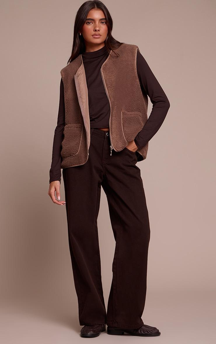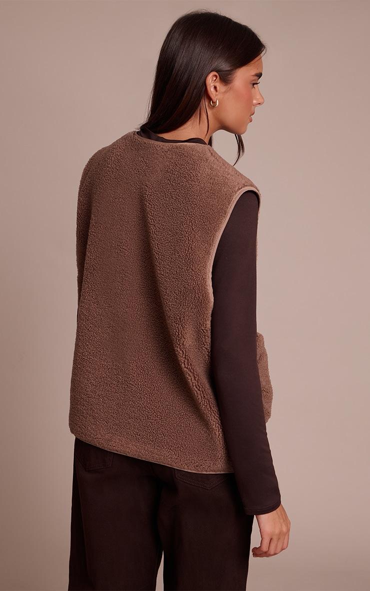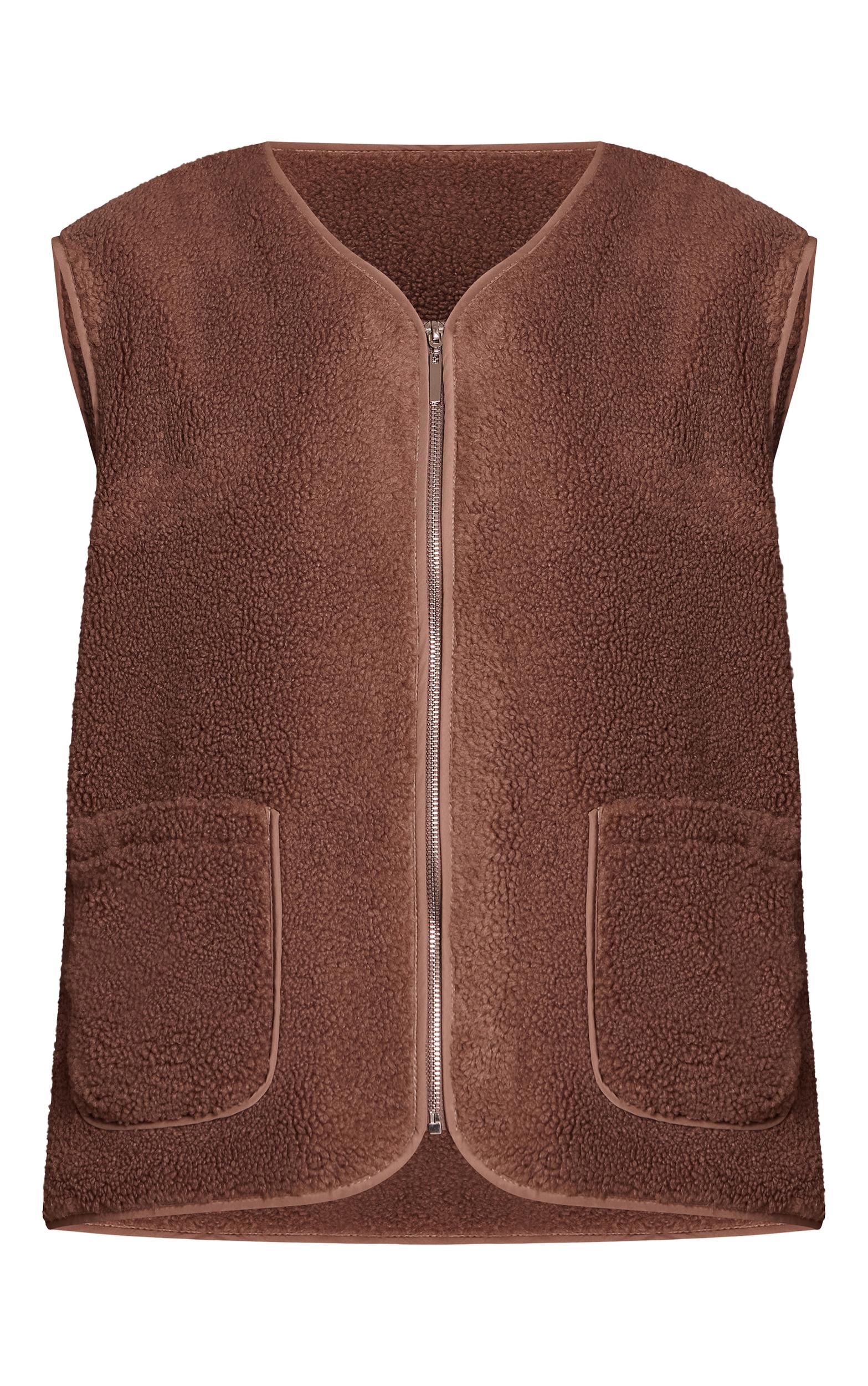 Own your everyday style with this essential layer. The beige borg vest features a V-neckline and full zip fastening, designed with a sleeveless cut and two rounded front patch pockets for a touch of practical utility. Layer yours effortlessly over a tonal long-sleeved sweater and wide-leg pants, grounding the entire look with a pair of commanding boots. A simple gold ring adds that knowing finishing detail, ensuring your daytime ensemble is effortlessly composed.Length approx 48.5cm/19inch (Based on sample size US 4)Model wears size UK 8/ EU 36/ AUS 8/ US 4Model Height - 5ft 7inchp]:!mb-4inch>Category: OuterwearProduct type: VestColor: BeigeMaterial: BorgOccasion: Day