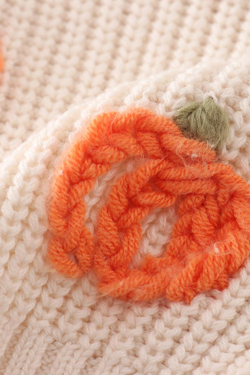 Spice up your wardrobe with our Beige Hand-Embroidery Pumpkin Pullover Sweater. Hand-crafted with love, this cozy sweater features playful pumpkin embroidery, making it the perfect addition to your fall fashion. Stay warm and stylish all season long with this unique and quirky piece.