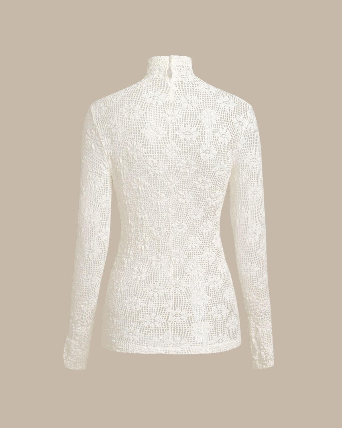 - Occasion: Daily - Style: work - Top Length: Waist - Fabric Stretch: Medium Stretch - Pattern Type: Floral - Embellishment: Sheer, Cut Out, Button - Neckline: Turtleneck - Fit: Slim - Fabric: Polyester - Material: Mesh
