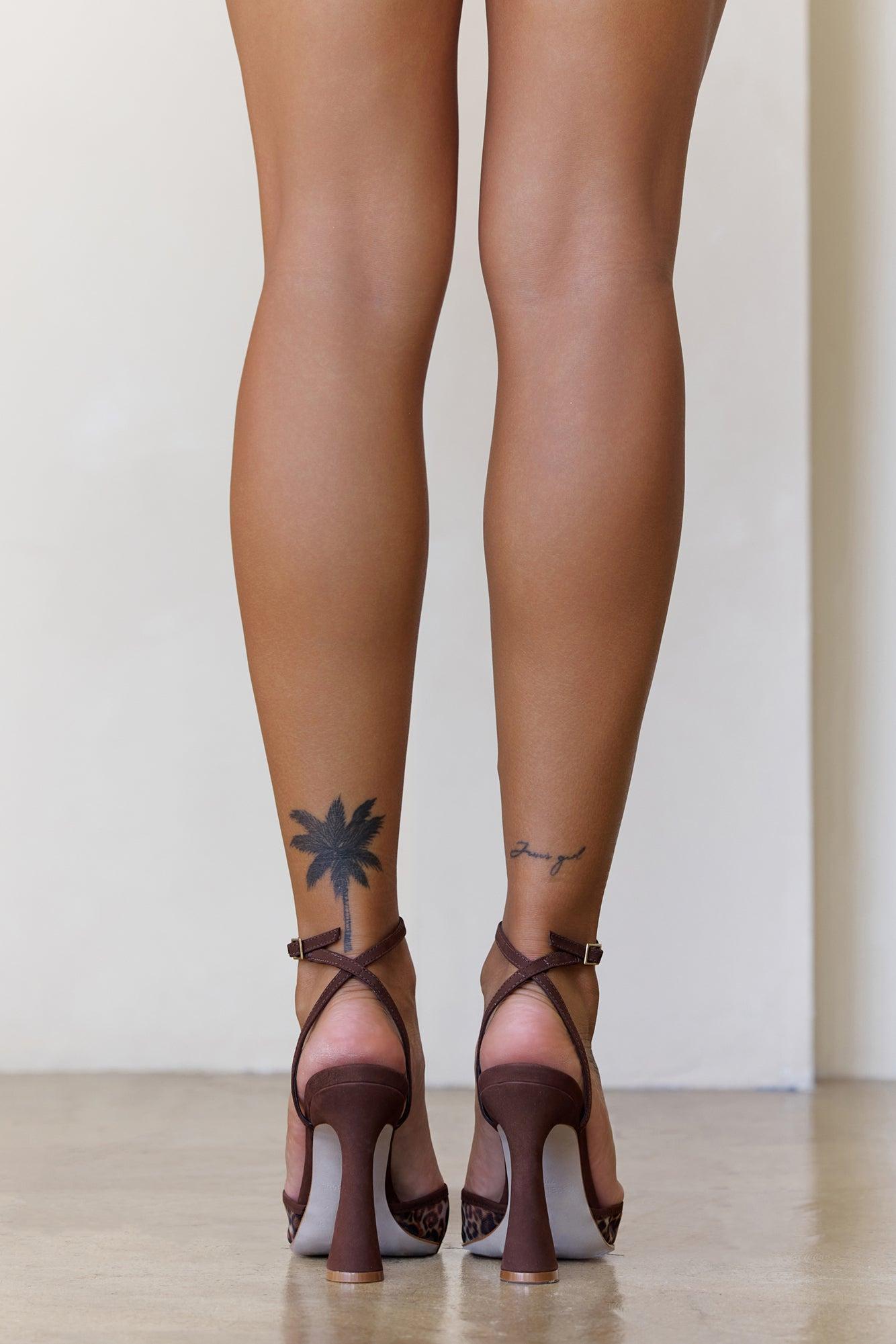 Keys Satin Ankle Strap Heels - Leopard