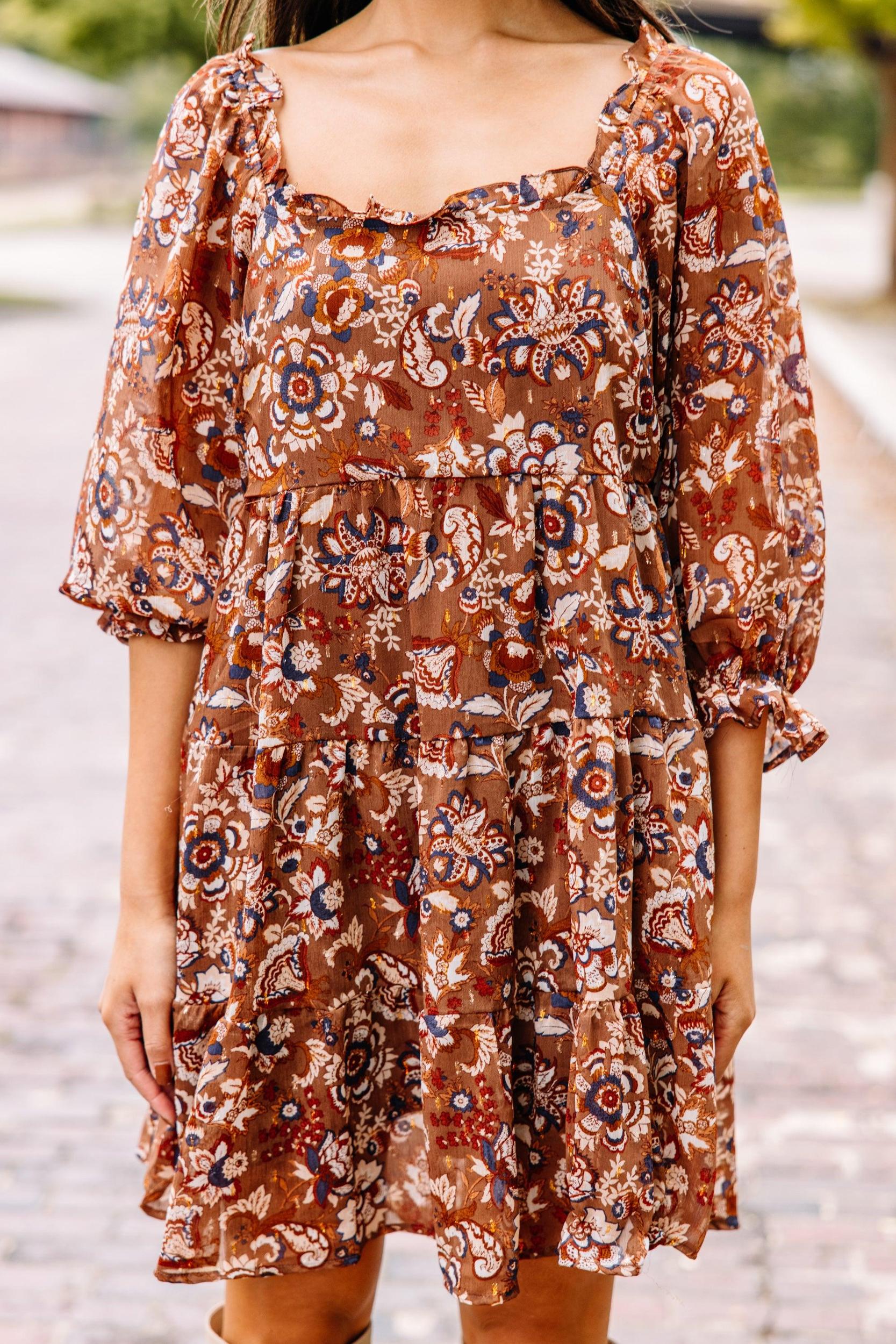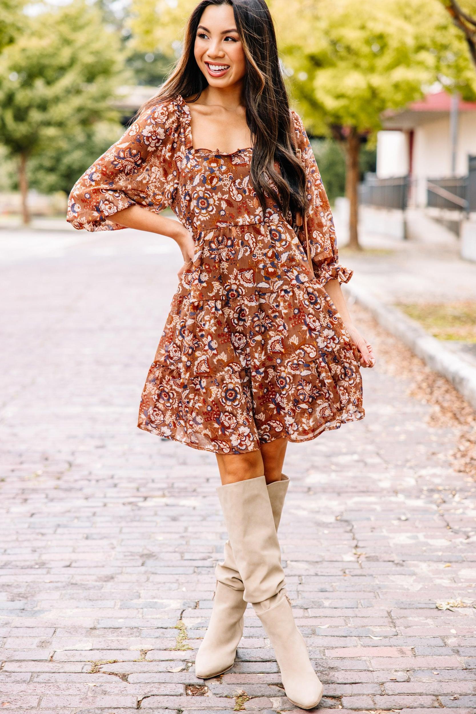 We have always believed in you! You are so confident and cute! So, we know we don't have to tell about how fab you are going to look in this adorable fall floral dress. You already know! But just in case you need a little nudge, just know that you will also be super comfy in this flowy dress with its elastic waist! This dress features 3/4 sleeves, a square neckline, floral print, and ruffled detailing. Material has no amount of stretch.Cindy is wearing the small.