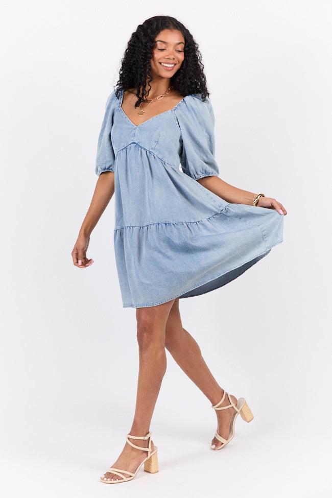 Believe Me Chambray V-neck Mini Dress FINAL SALE