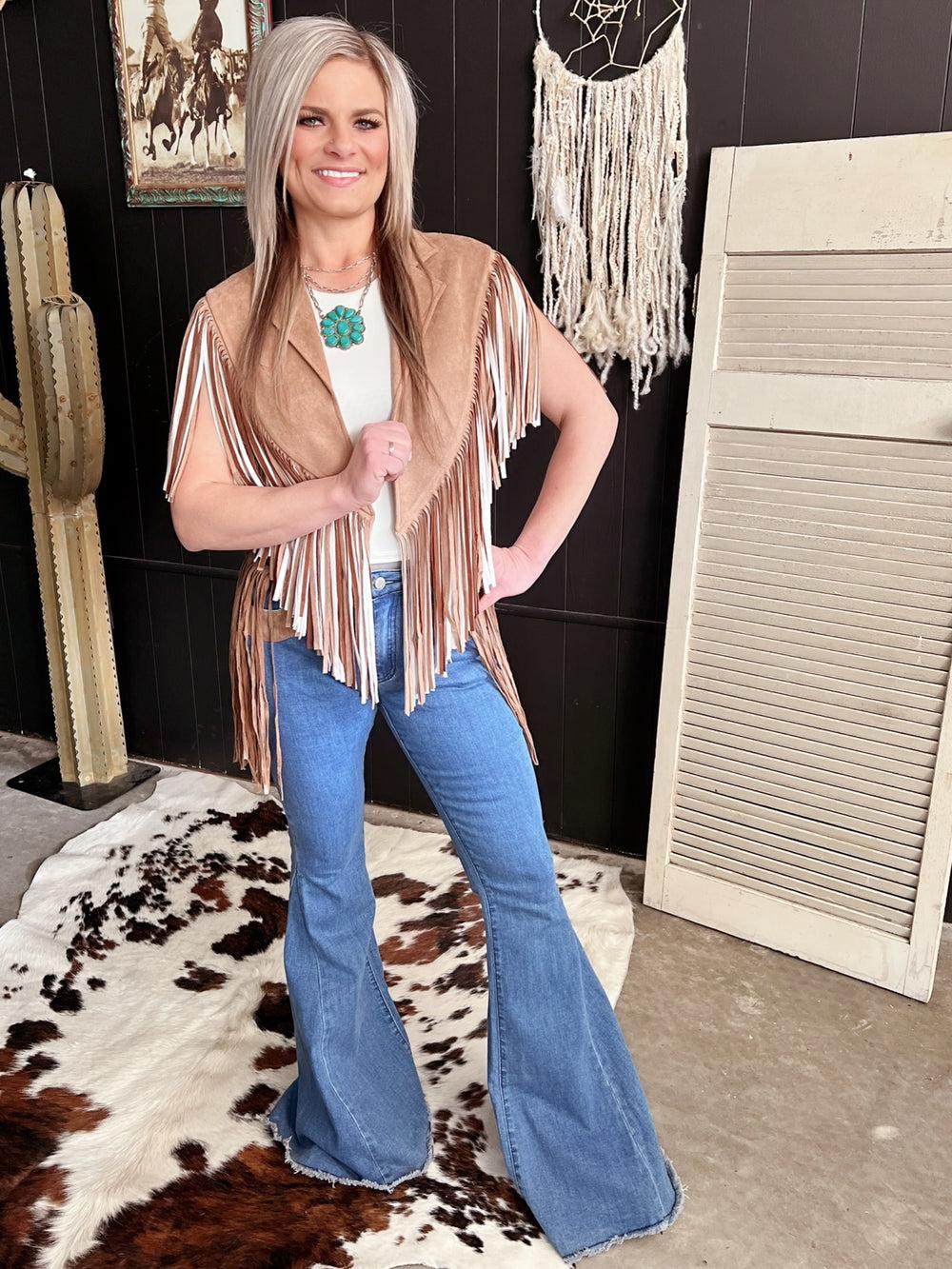 Bell Bottom Denim With Suede Fringe*