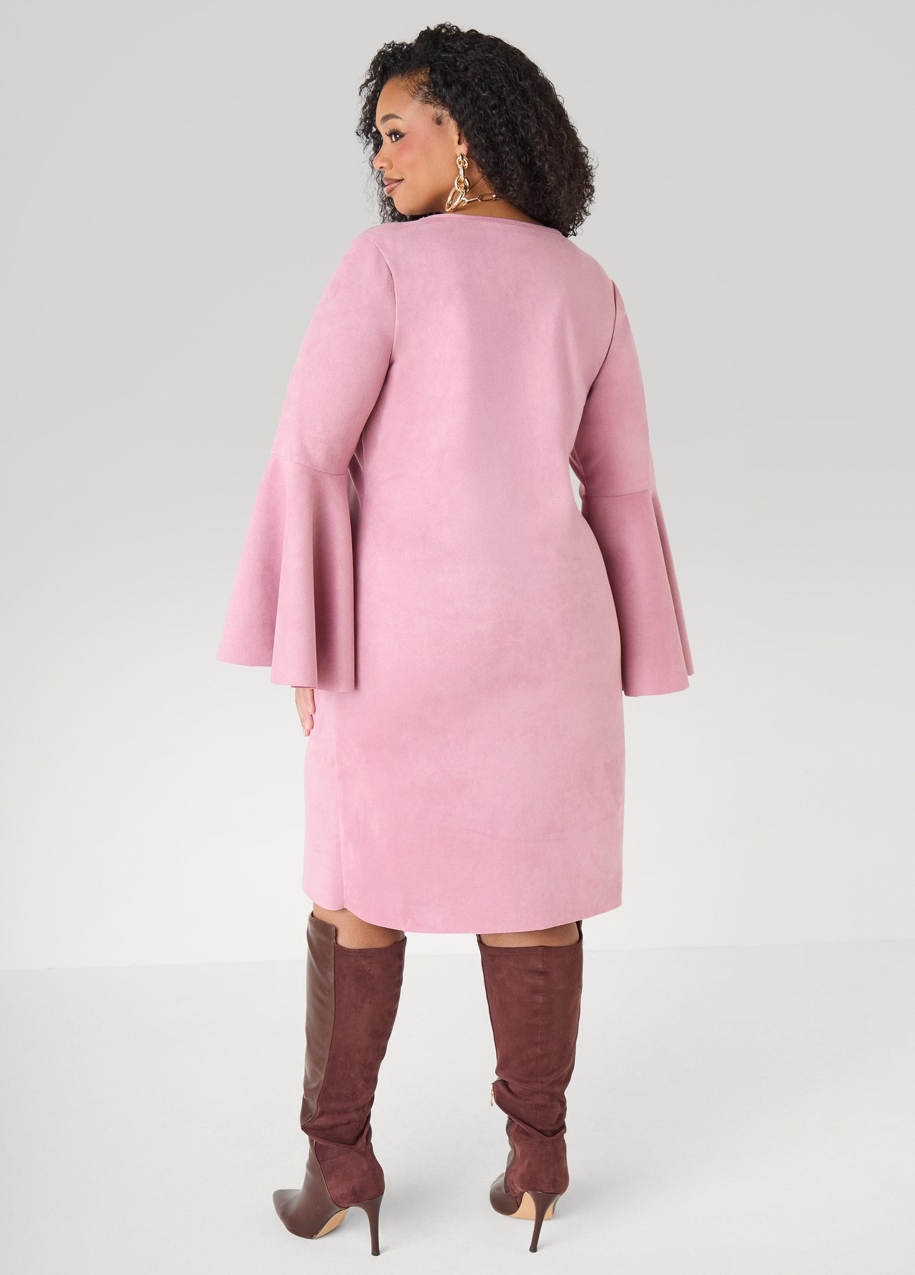 Bell Sleeved Faux Suede Dress