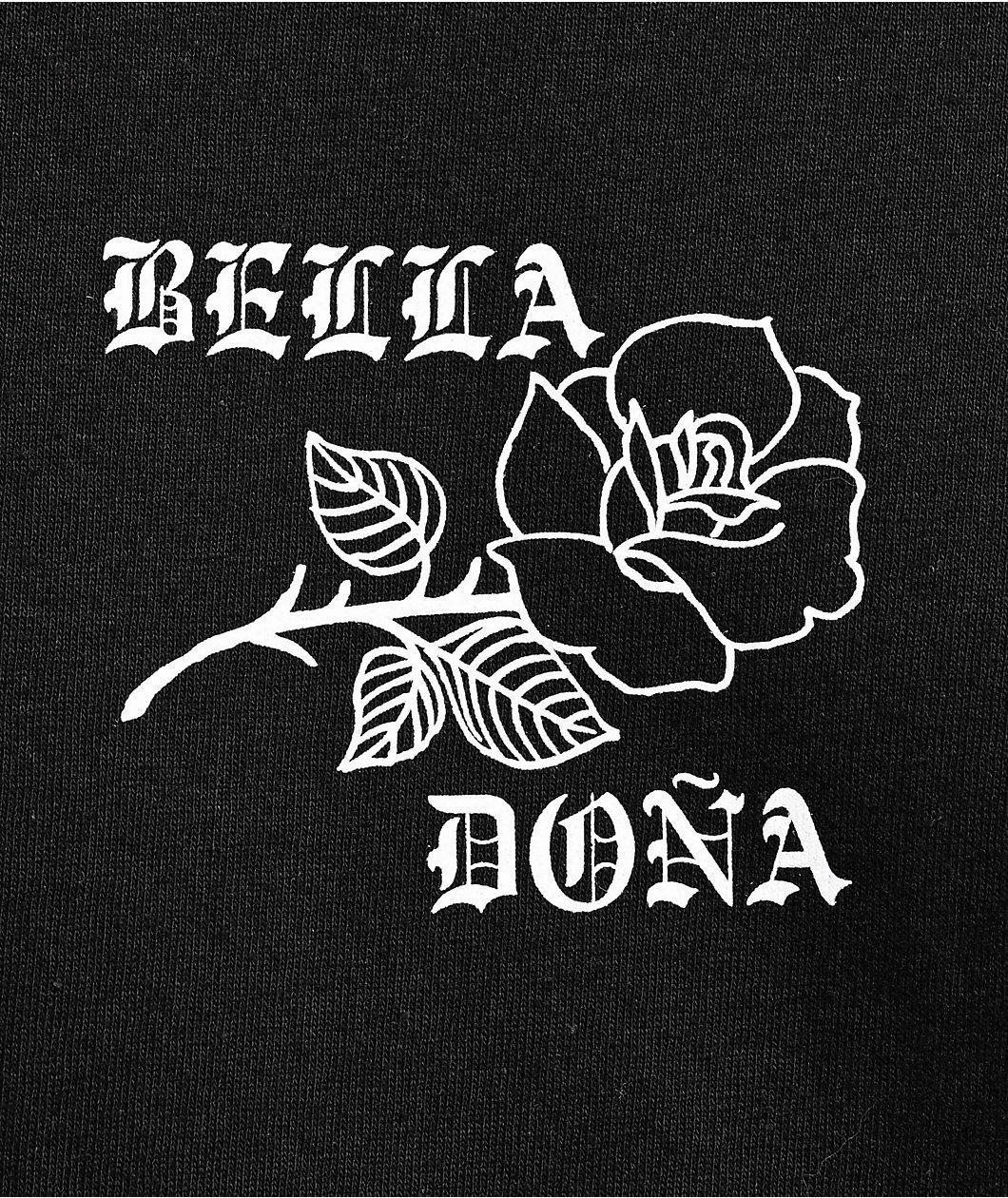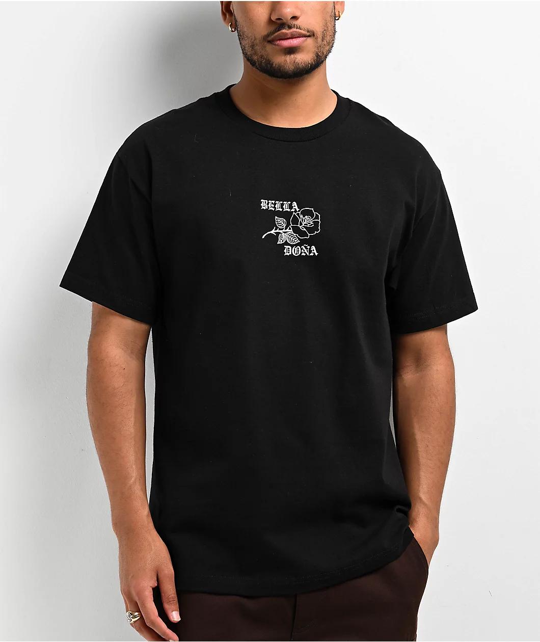 The No Regrets t-shirt from Bella Dona arrives in a black colorway, taking inspiration from classic LA streetwear. The unisex silhouette is made using 100% midweight cotton, and features a screen-printed rose design on the chest. A larger image of a