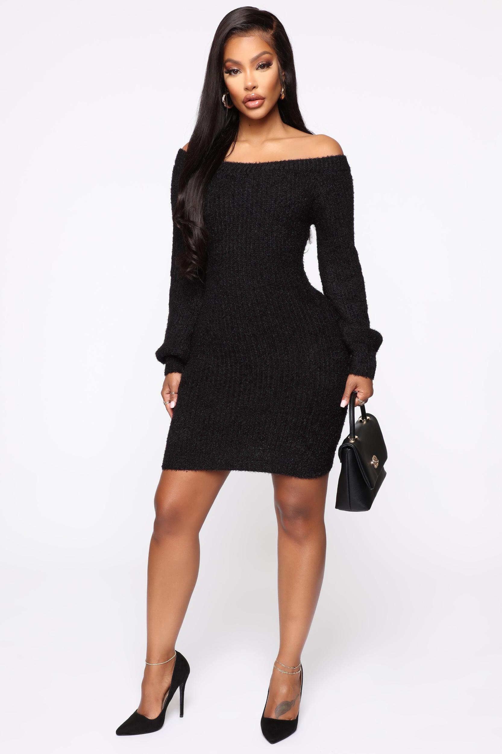 Bella Off Shoulder Sweater Dress - Black