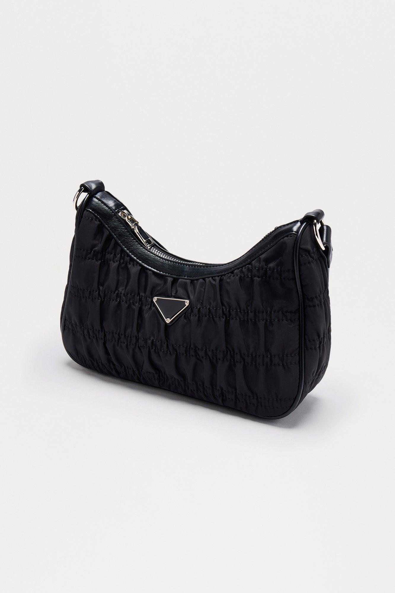 Bella Scrunched Nylon Blend Streetwear Shoulder Handbag - Black Female