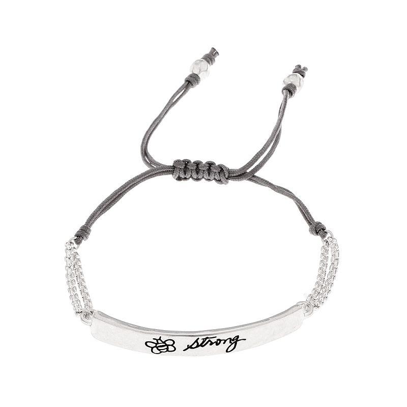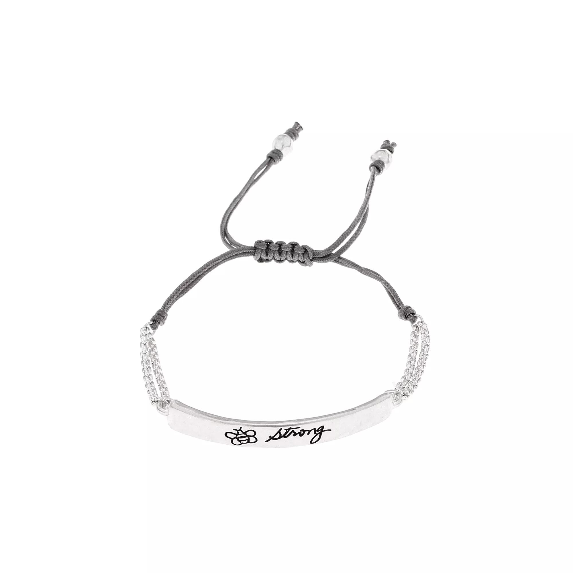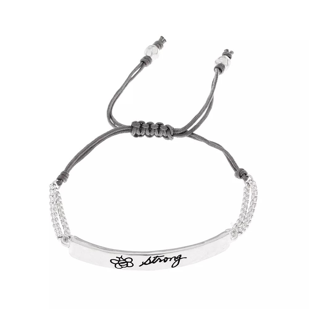 This beeautiful silver tone adjustable cord bracelet is a great reminder to keep your strength in the face of any difficulty. This beeautiful silver tone adjustable cord bracelet is a great reminder to keep your strength in the face of any difficulty. Length: 10 in. Metal: zinc Plating: silver tone Additional details: adjustable design Packaging: decorative card Please note, due to the high value of this item, a signature may be required upon delivery. Size: One Size. Color: Multicolor. Gender: female. Age Group: adult.
