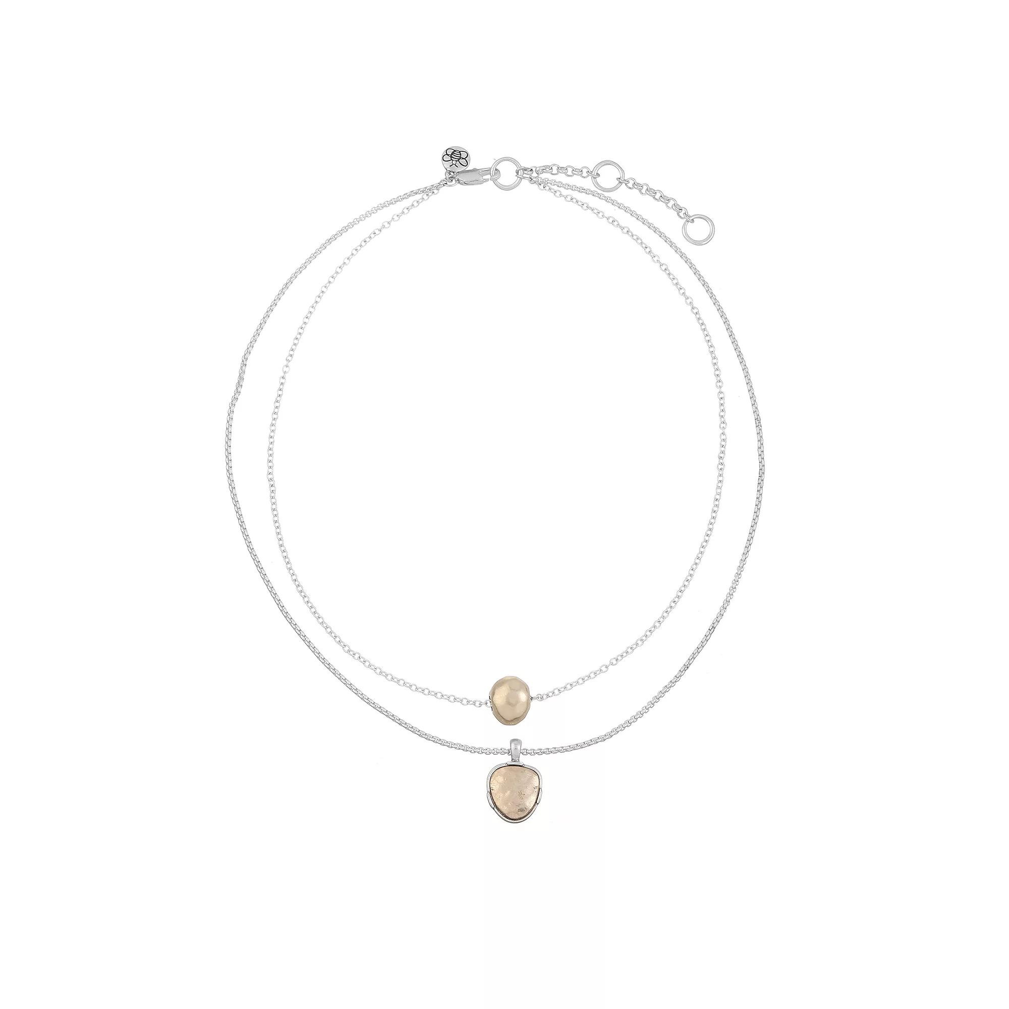 Accessorize in style Bella Uno Worn Two-Tone Multi-strand Ball & Disc Pendant Necklace. Click on this JEWELRY & WATCHES GUIDE to learn about fit, styles, materials and more! Accessorize in style Bella Uno Worn Two-Tone Multi-strand Ball & Disc Pendant Necklace. Click on this JEWELRY & WATCHES GUIDE to learn about fit, styles, materials and more! FEATURES Ball: 0.57L x 0.45W, Disc: 0.9L x 0.62W Chain type: cable, rolo Clasp: lobster-claw Nickel free Metal: alloy, zinc Plating: fine silver Finish: hammered Packaging: boxed ImportedRESPONSIBLE Recycled 100 Claim Standard Certified, Recycled Blended Claim Standard Certified CU1066541RCS-2023-00064340 Contains recycled materials Size: 18/20+3. Color: Two Tone. Gender: female. Age Group: adult. Material: Silver Plate.
