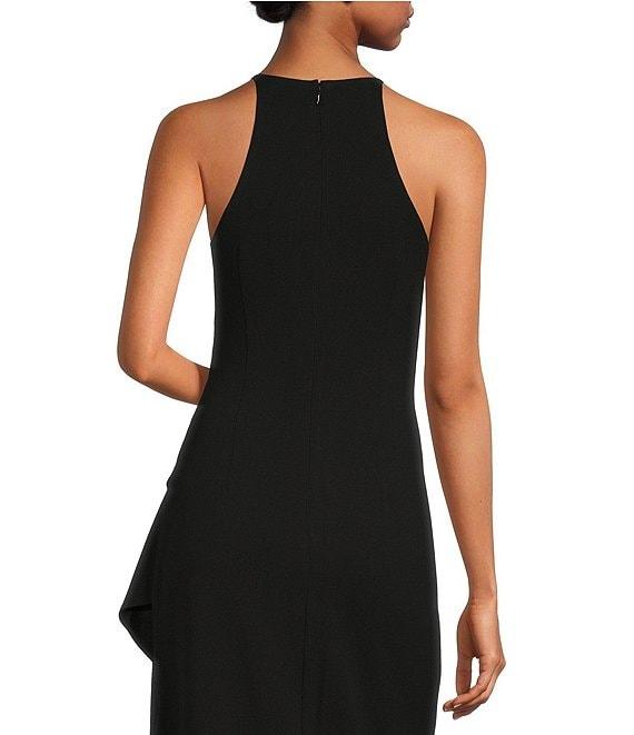 Belle by Badgley Mischka Cara Halter Neck Sleeveless Stretch Crepe Ruched Side Slit Sheath Gown