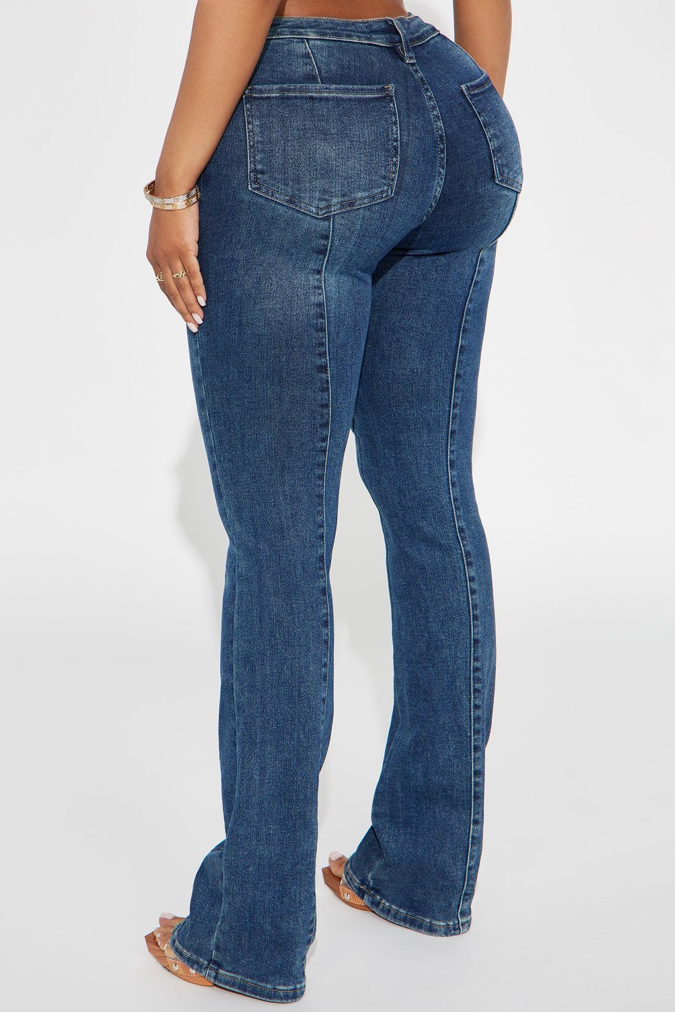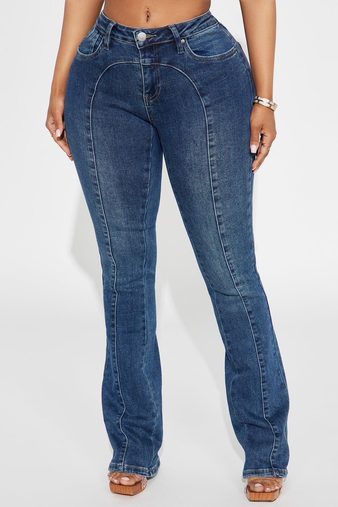 Available In Dark Wash. Bootcut Leg Jean 5 Pocket Medium Stretch Seaming 9" Rise 18" Leg Opening 34" Inseam Disclaimer: Due To The Specialized Wash Process, Each Garment Is Unique. 94% Cotton 5% Polyester 1% Spandex Imported