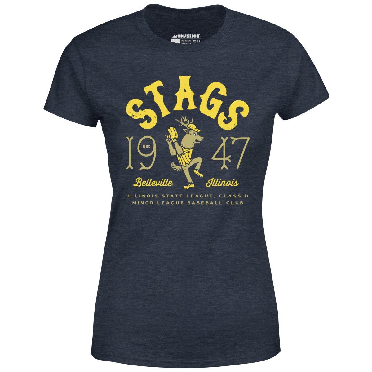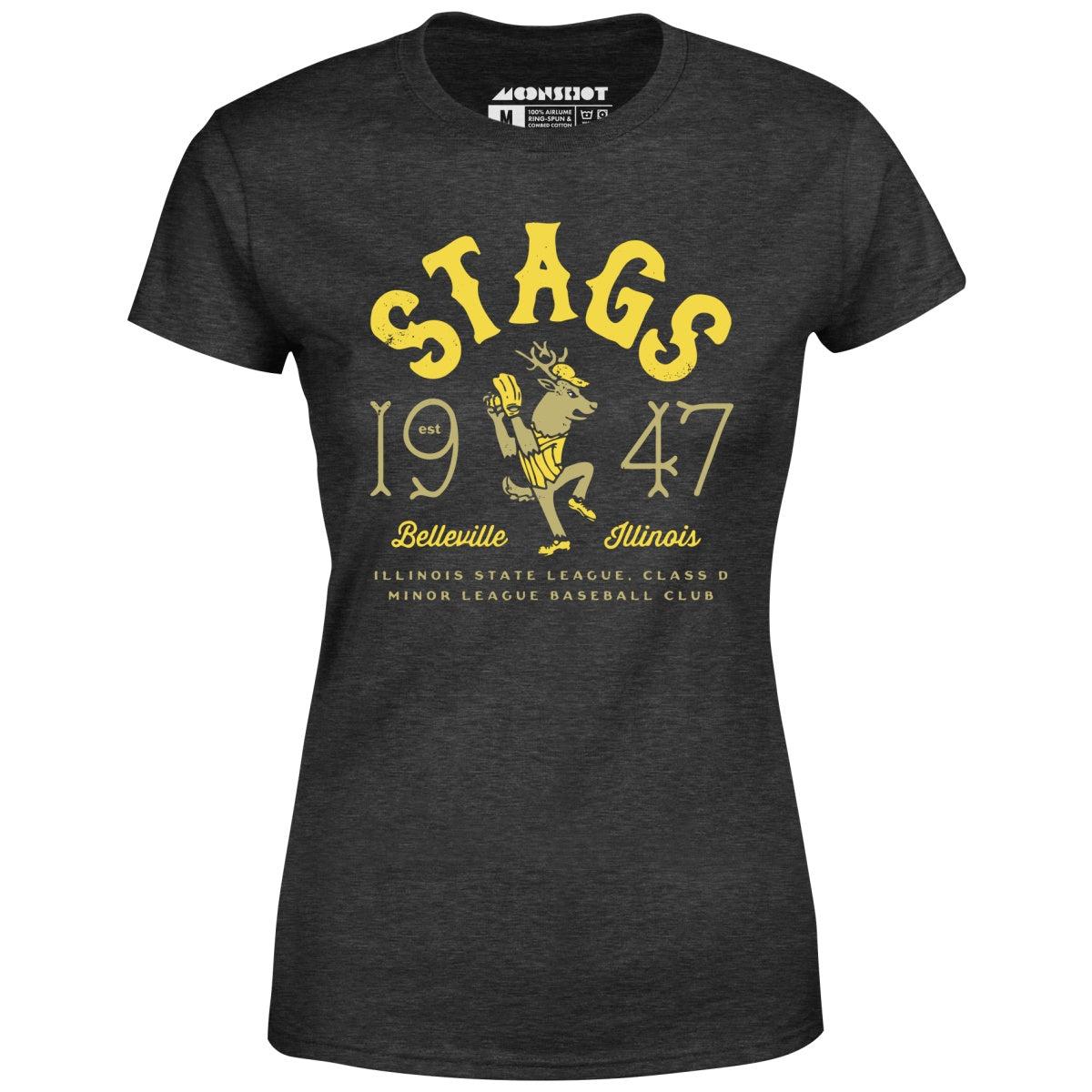 The Belleville Stags were a minor league baseball team based in Belleville, Illinois from 1947 to 1949. They played at the Class D level in the Illinois State League and were affiliated with the St. Louis Browns and New York Yankees. This design is part of our old school retro baseball tees inspired by the vintage and now defunct Minor League Baseball teams of yesteryear. Printed on our super soft 100% ringspun & combed cotton women's T-Shirt. Or upgrade to our Luxury 52/48 cotton/poly vintage heather edition for an even softer classic look. We print & ship all of our high quality graphic tees in the USA.