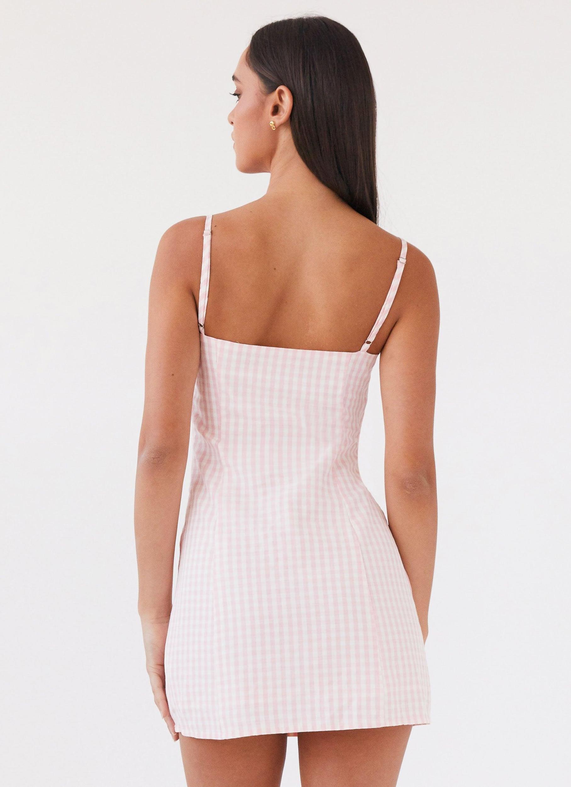 Peppermayo Exclusive Introducing our Bellissima Bustier Mini Dress. Featuring a pink gingham print and a delicate ribbon bow at the bust, this dress captures the essence of golden skies and balmy nights. Perfect for making a statement with style and elegance as the sun sets. - Mini dress- Adjustable straps- Lace trim detail- Gingham print- Ribbon bow at bust- Bust cup detail- Side seam invisible zipper- Fully lined- 100% Polyester Size AU 8 / US 4 garment measurements: Waist 68cmLength 60cmBust 76cmHip 92cm Roberta wears size AU 6 / size US 2