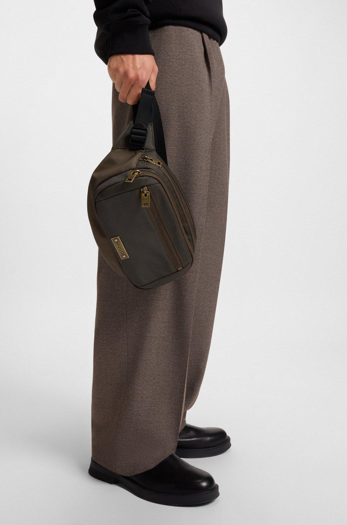 Belt bag with antique-effect logo plaque