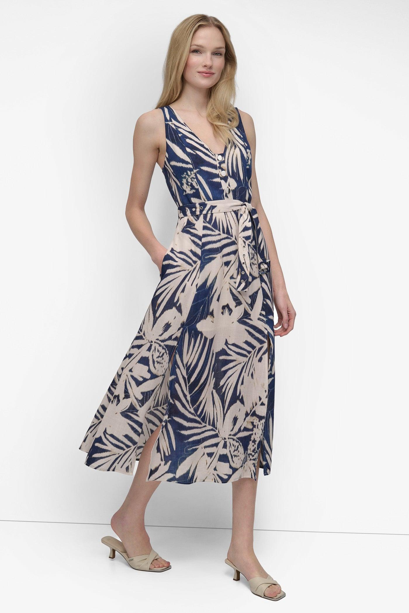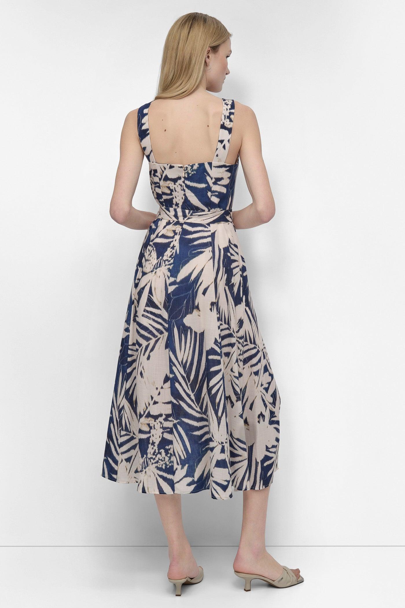 BELTED FLORAL MIDI DRESS