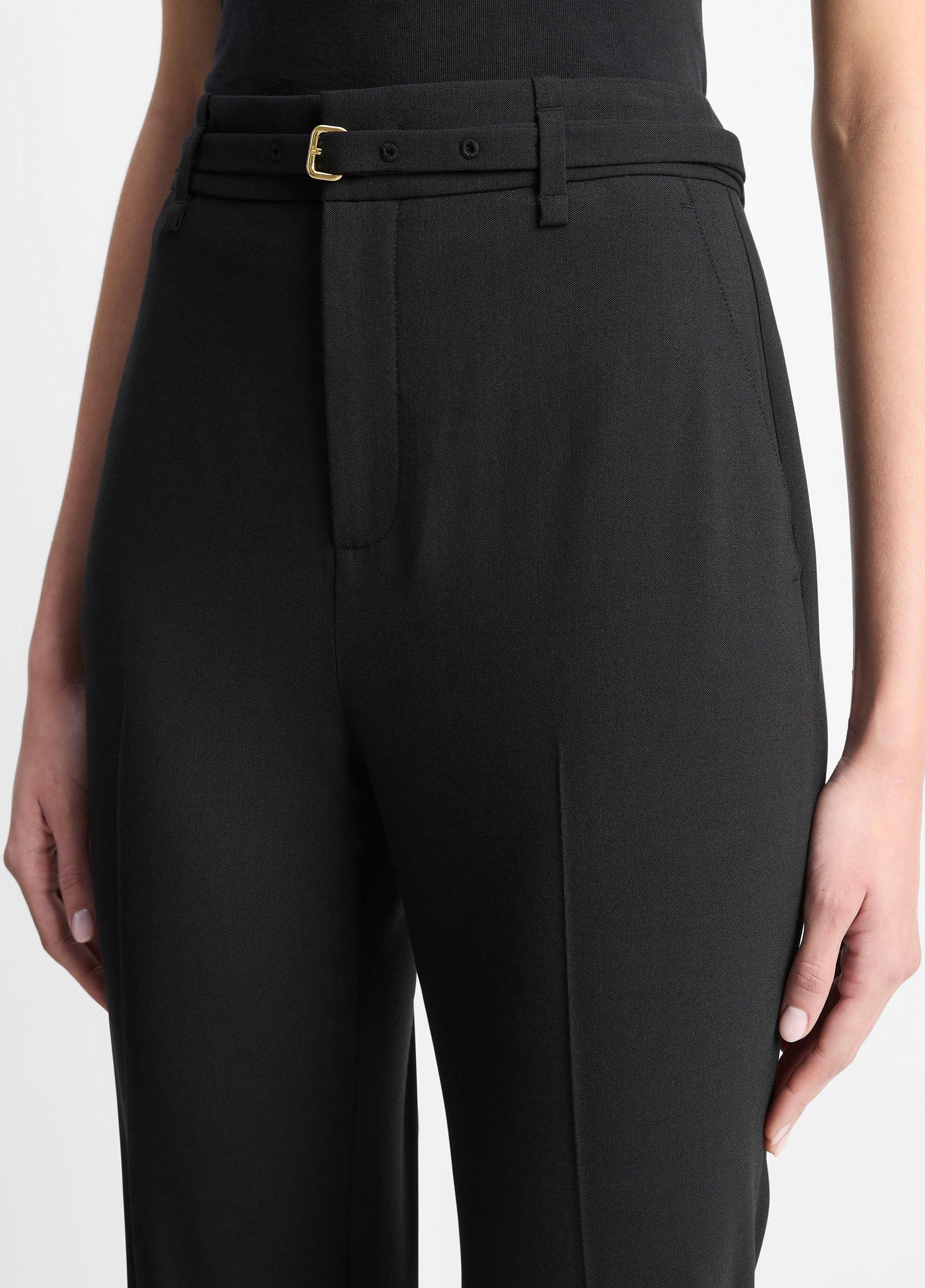 This versatile trouser is cut with a slim leg that softly flares out past the knee to create a fluid, streamlined silhouette. We crafted it from an Italian tropical wool blend that's lightweight and breathable, ensuring a comfortable feel throughout the year. A refined self-belt lends this pant its dash of definition.