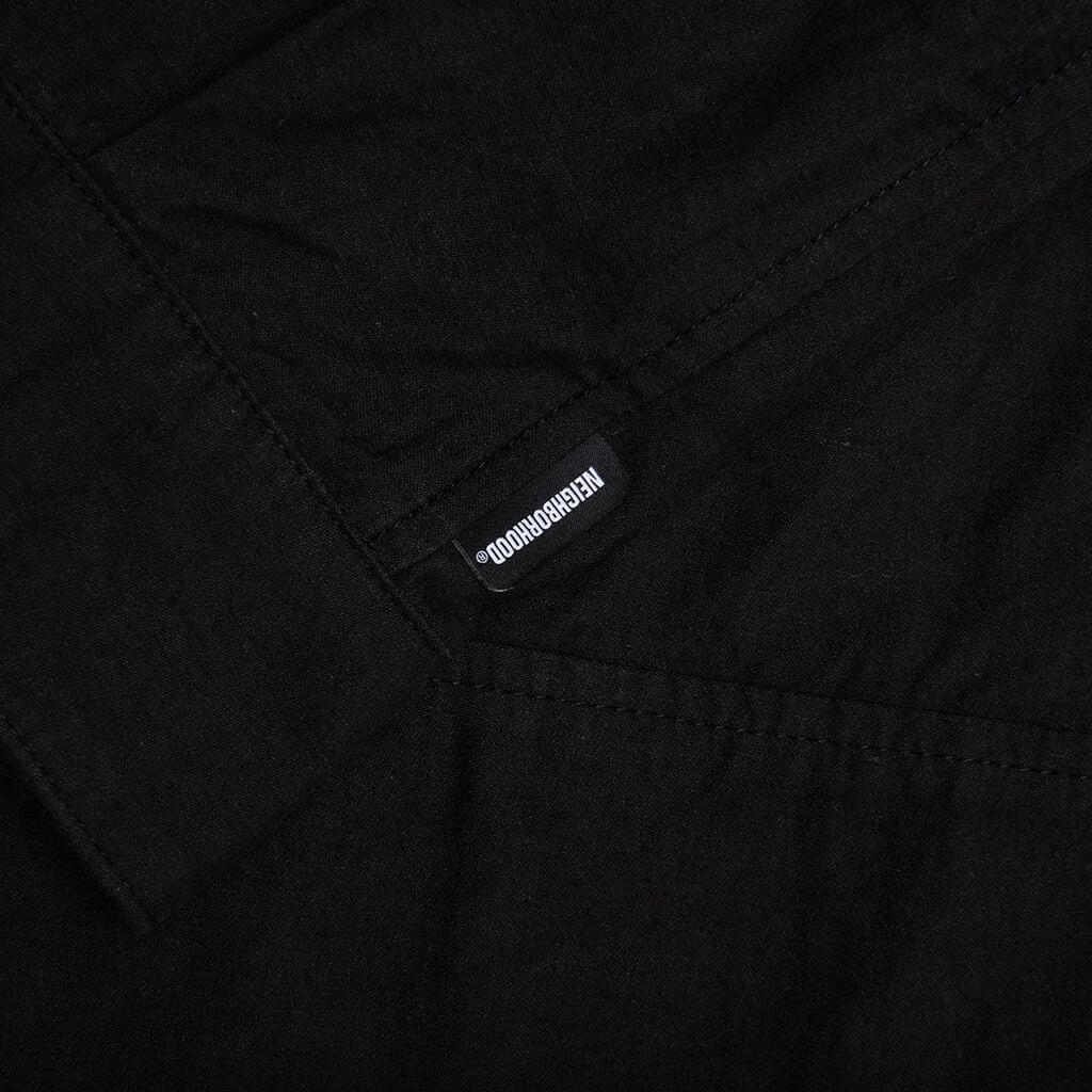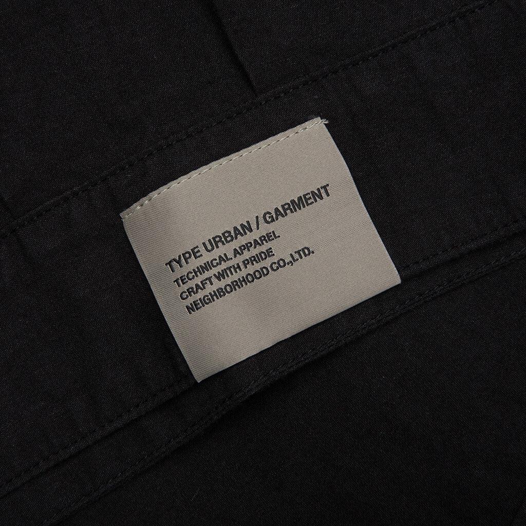 Neighborhood introduces the Belted Officer S/S Shirt. Constructed from a blend of 80% cotton and 20% linen, this woven shirt features a boxy fit for a relaxed, utilitarian look. The embroidered logo on the chest and the flap pocket with a button add functional details, while the clip tag on the seam and brand label at the left hem finish off the design. 80% Cotton, 20% Linen Boxy fit Embroidered logo on chest Flap pocket with button on chest Clip tag on side seam Brand label at left hem Open collar Style No: 251AQNH-SHM07-BLK