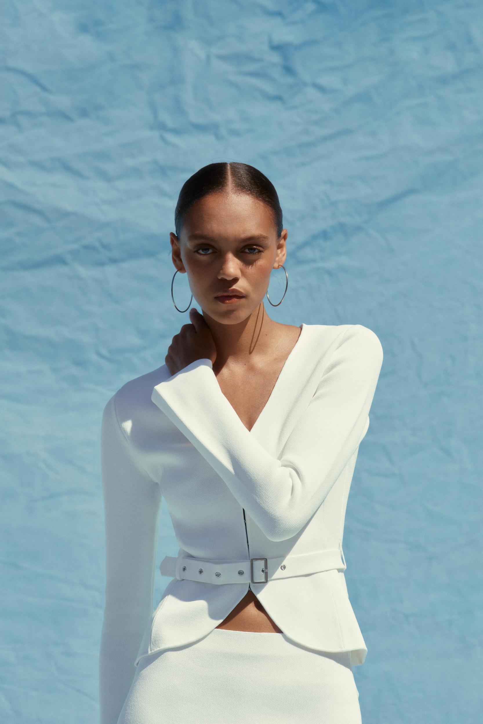 BELTED PLAIN KNIT JACKET
