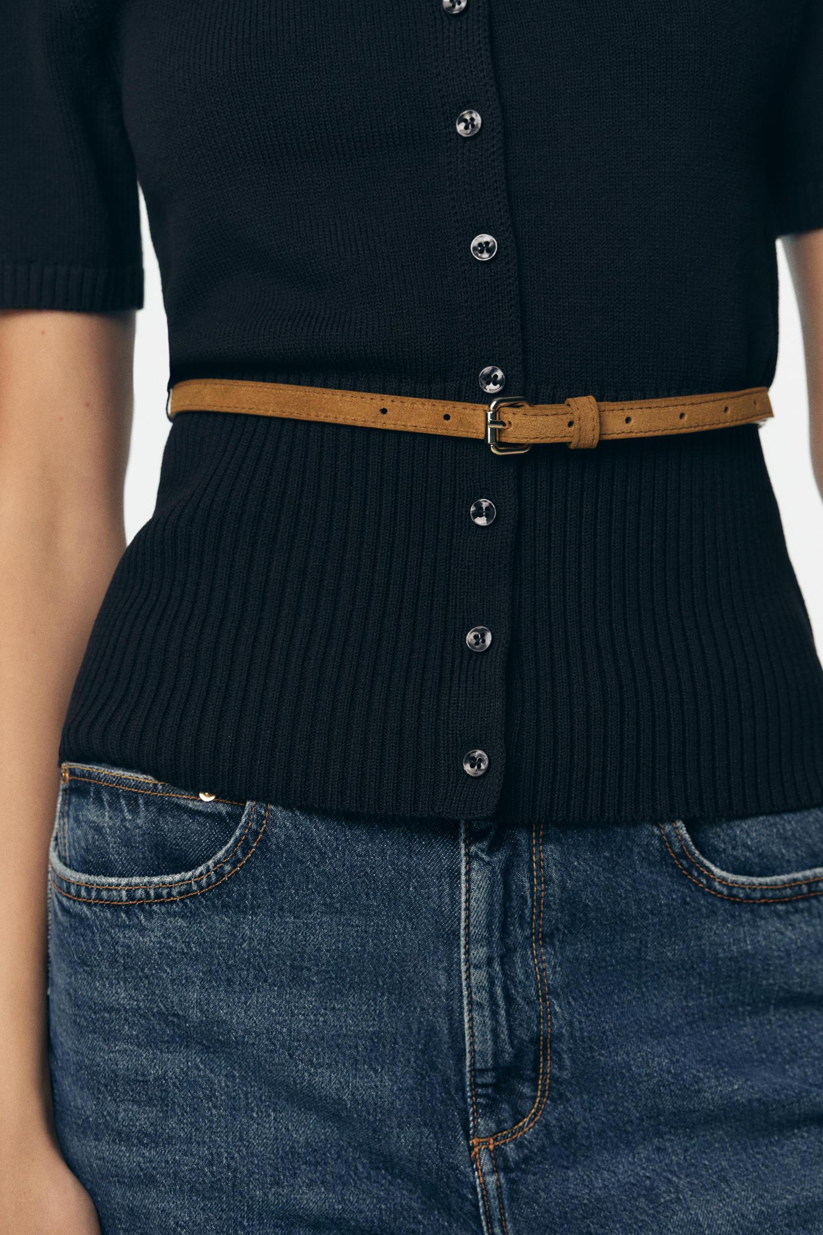 BELTED SHORT SLEEVE KNIT CARDIGAN