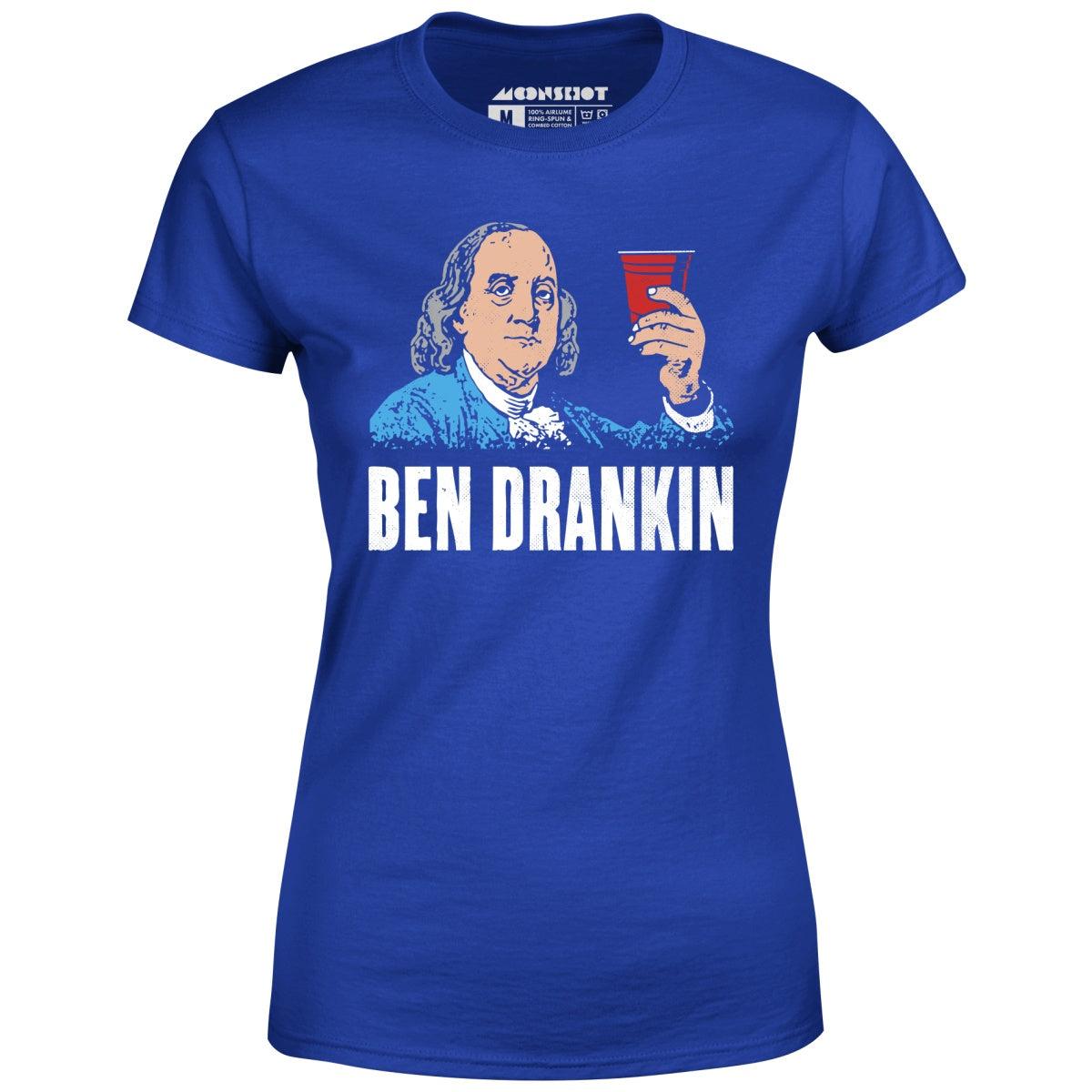 Ben Drankin! Here's the perfect drinking design for 4th of July or any other place where drankin is done. Inspired by Benjamin Franklin and red party cups nationwide. Printed on our super soft 100% ringspun & combed cotton women's T-Shirt. Or upgrade to our Luxury 52/48 cotton/poly vintage heather edition for an even softer classic look. We print & ship all of our high quality graphic tees in the USA.