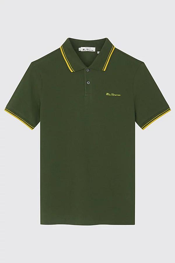 Organic cotton Ben Sherman pique polo, with contrast signature mod tipping detail, signature contrast chest embroidery and two button placket. Made with 100% GOTS Certified Organic Cotton. Content + Care 100% Organic Cotton Machine washable cold gentle cycle. Wash with similar colors. Cool iron on reverse. Imported Size + Fit Model is wearing size M Runs small Ben Sherman Signature Cotton Pique Polo Shirt Top in Camouflage, Mens at Urban Outfitters