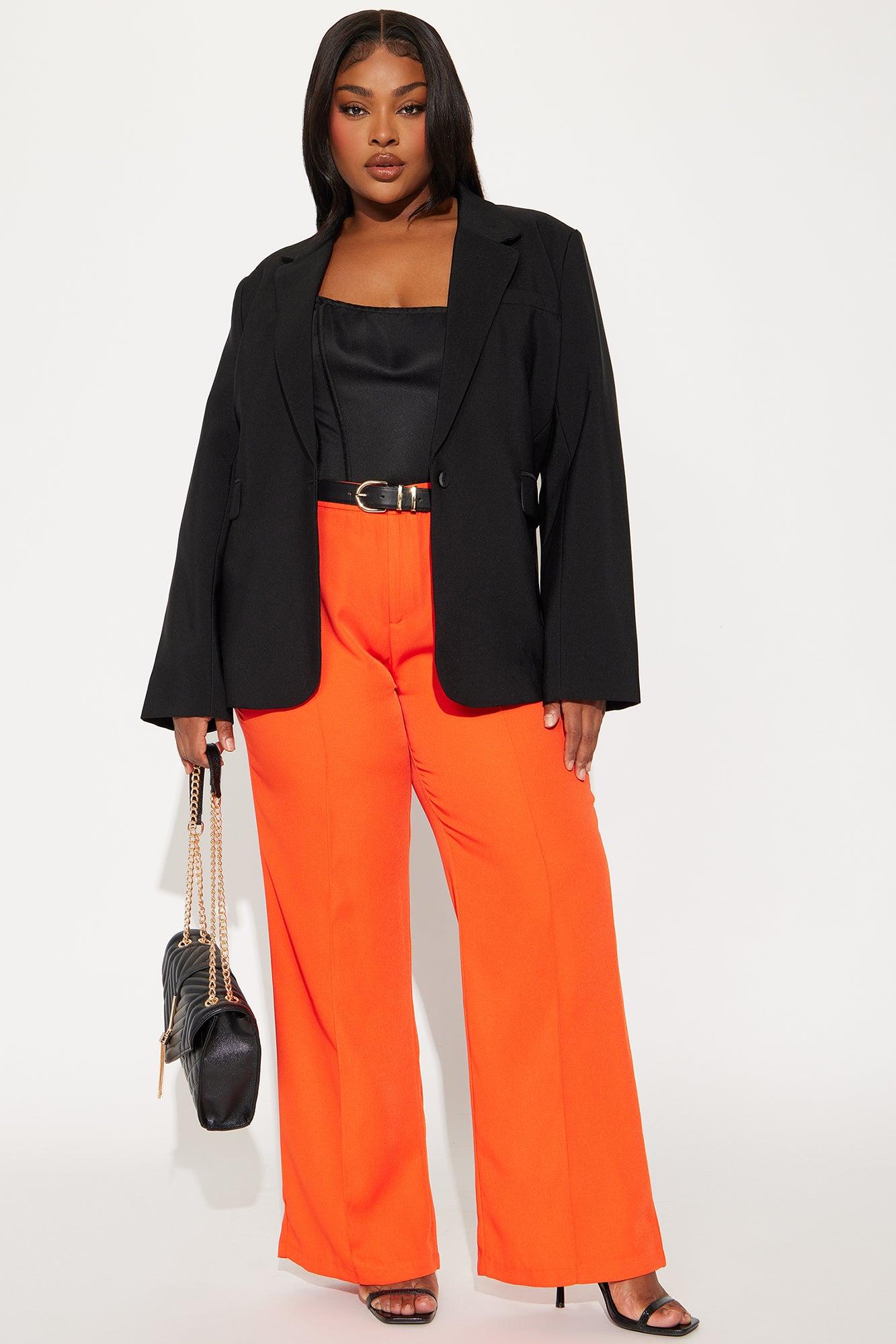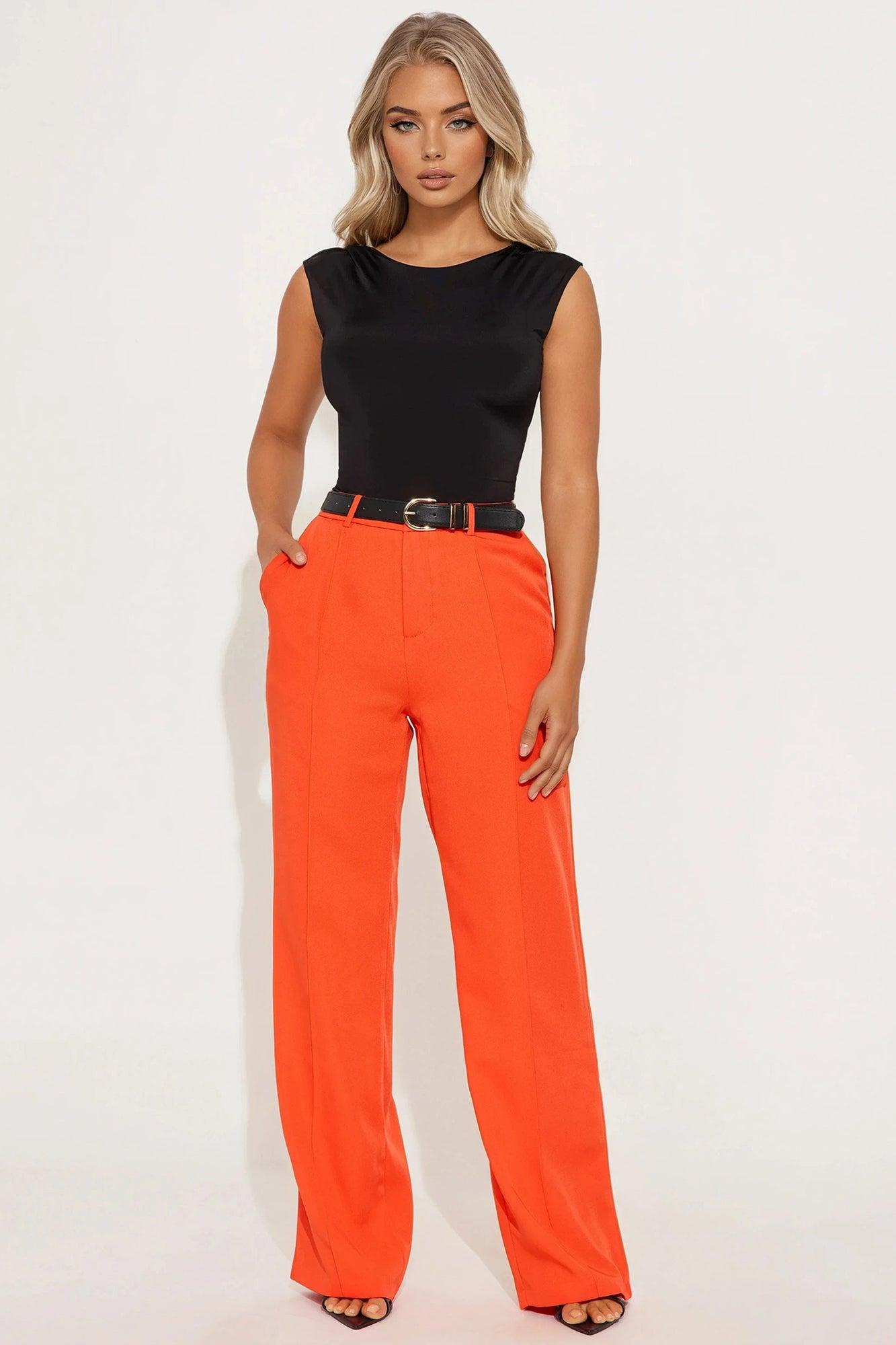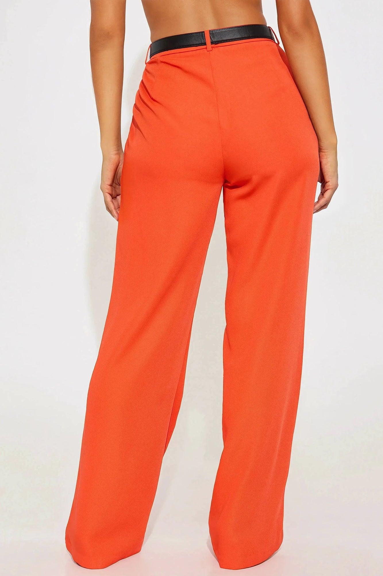 Available In Black And Red. Wide Leg Trouser High Rise Hook & Eye Closure With Zip Fly Belted Belt Loops Hand Pockets Non Stretch 31" Inseam Self: 100% Polyester Imported California Proposition 65WARNING: Cancer and Reproductive Harm - www.P65Warnings.ca.gov.