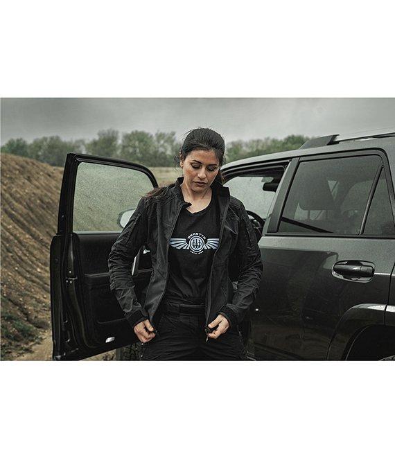 From Beretta, this jacket features: Multiple fabric components for added durability and protection 2-way stretch Riptech ripstop fabric on shoulder and sleeves. Hidden ventilation zipper on sleeve Sleeve pockets Elbow pad slot on elbow (pad not included) Main jacket hand pockets with flat hidden zipper Soft fleece lined comfort collar Oversized durable sleeve cuff with Velcro Reinforced shoulder pads for comfort Back yoke ventilation Approx. 25.5 length Polyester/elastic Machine wash; tumble dry Imported. The Beretta Ladies Gear Collection Training, is focused on delivering improved garment fit with modern performance fabrics aiding in durability for dynamic shooting competition and outdoor rigorous physical training. The LGCT assortment offers water-repellant jackets, range pants, performance T-shirts & fleeces.Designed with the female athlete in mind, we improved seam work and elasticity to showcase the female form without sacrificing technical details. The strategic cross-over appeal with signature colorways and fabric treatments can blend to outdoor ranges, early field hunts, or weekend casual wear.