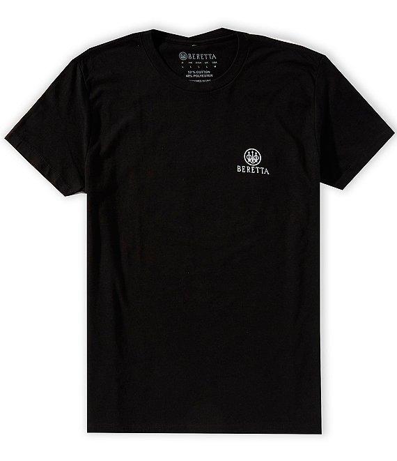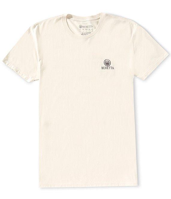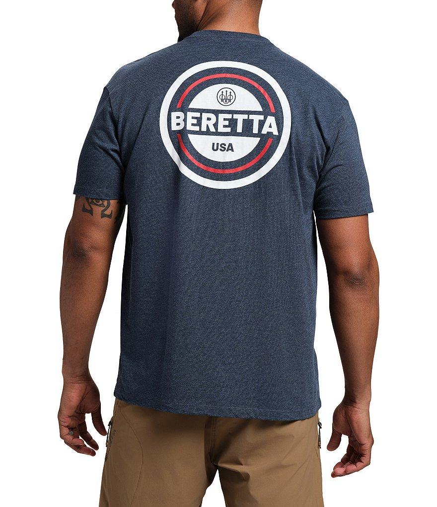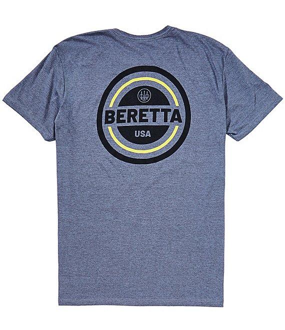 From Beretta, this T-shirt features:Relaxed fitCrew necklineShort sleevesSmall logo on the left side of chestLarge circular logo graphic on the backRibbed hemPullover constructionCotton/syntheticMachine wash/tumble dryImported.