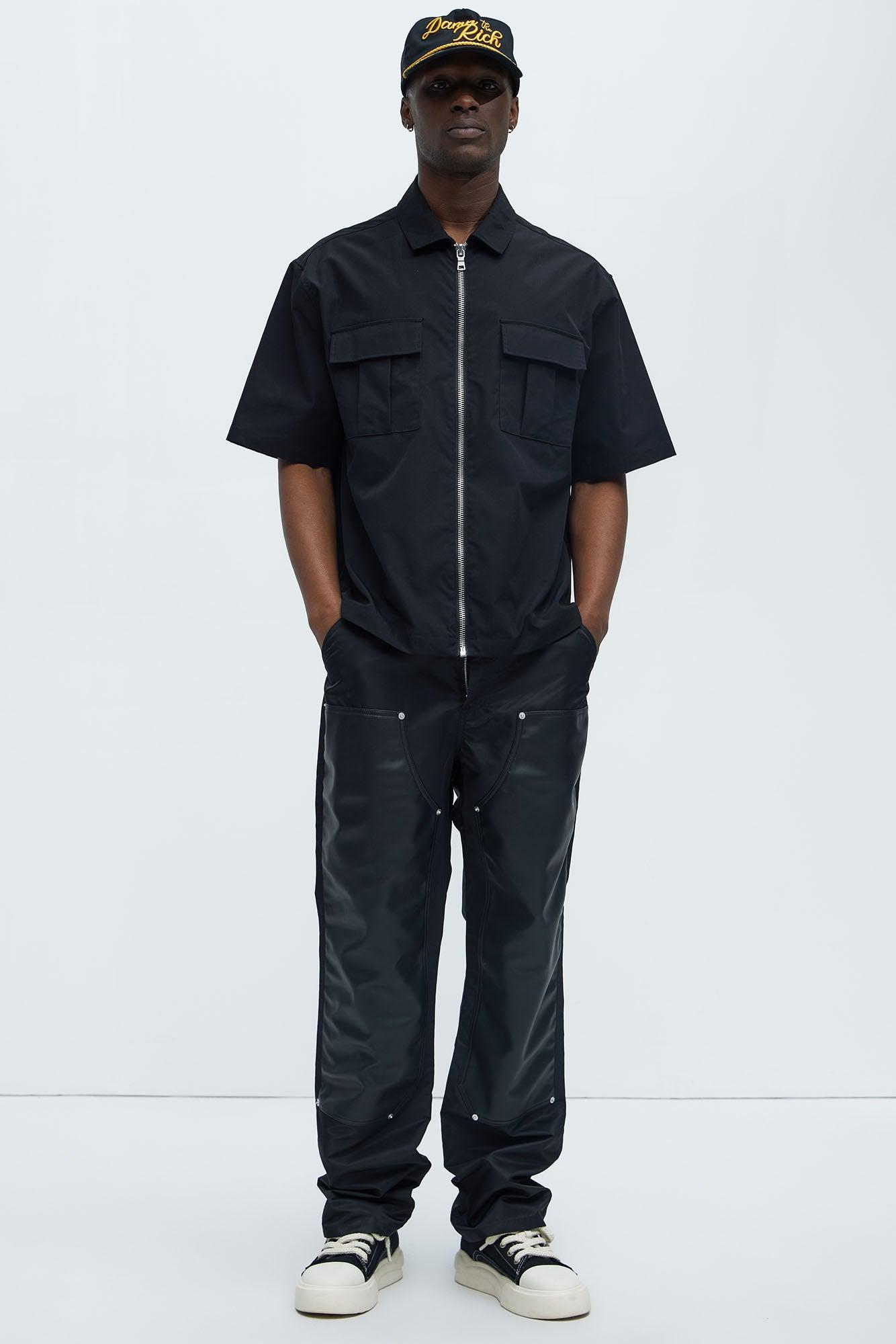 Available In Black. Straight Fit Zip Fly Button Closure Side Pockets Panel Carpenter Detail Shell 1: 100% Nylon Shell 2 Coating: 100% Polyurethane Base Fabric: 100% Polyester Imported California Proposition 65WARNING: Cancer and Reproductive Harm - www.P65Warnings.ca.gov.