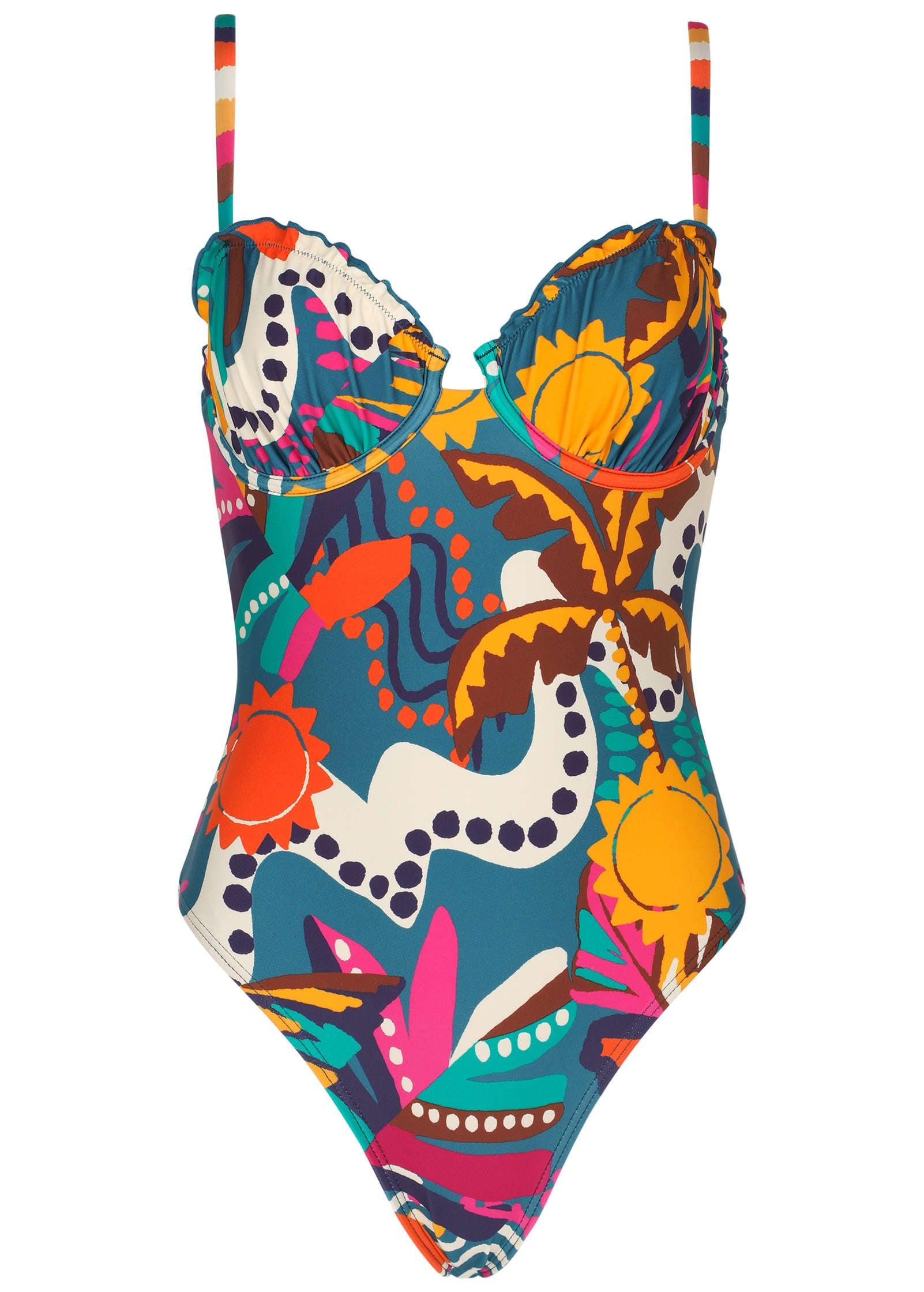 You're looking at our first ever one-piece with a supportive underwire! It has the same balconette fit as our Bermuda Bikini Top, but with the added coverage of a one-piece. Feminine details like ruffle trim along the edge of the bra cups and a keyhole cutout in back make this suit feel so special.