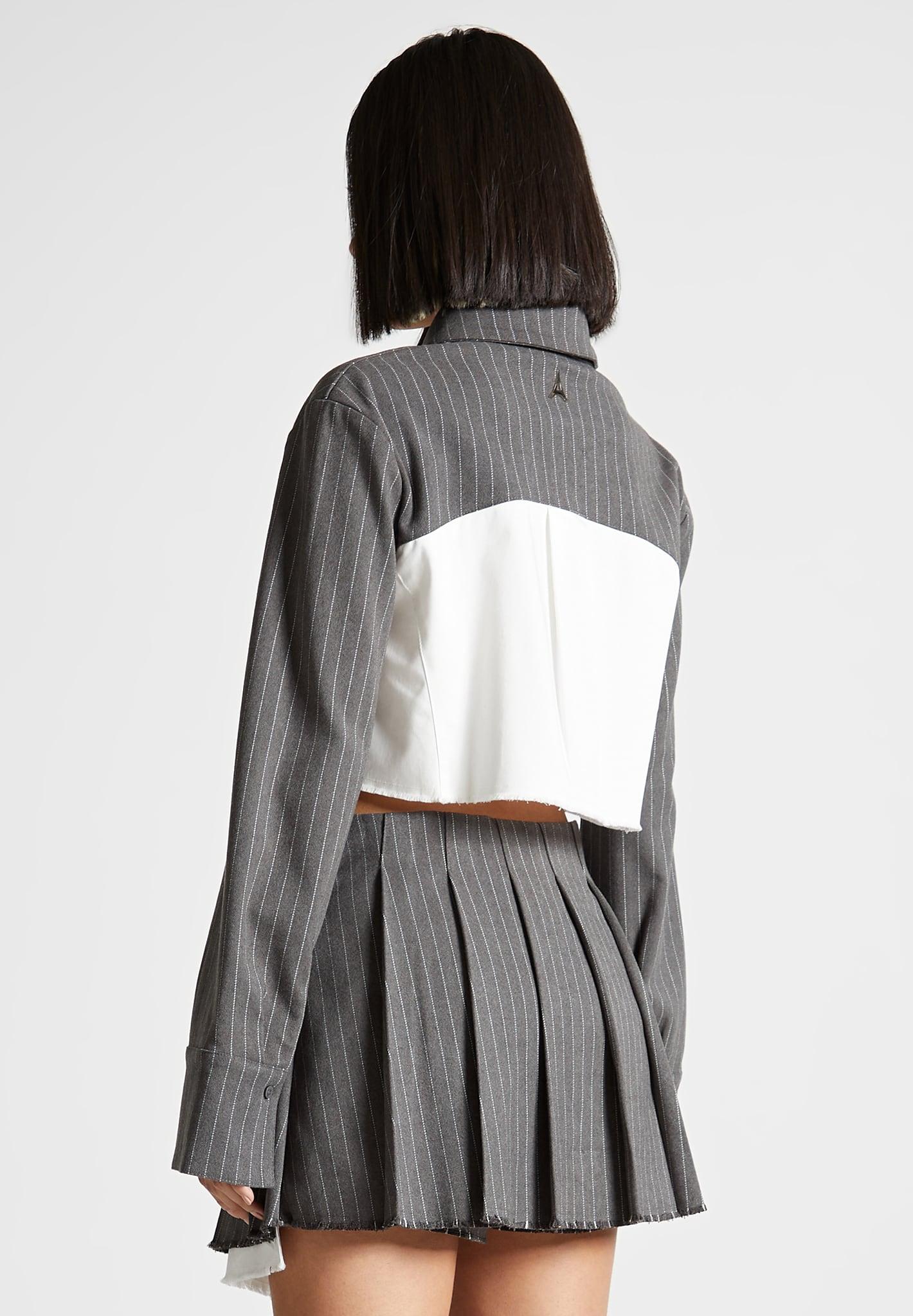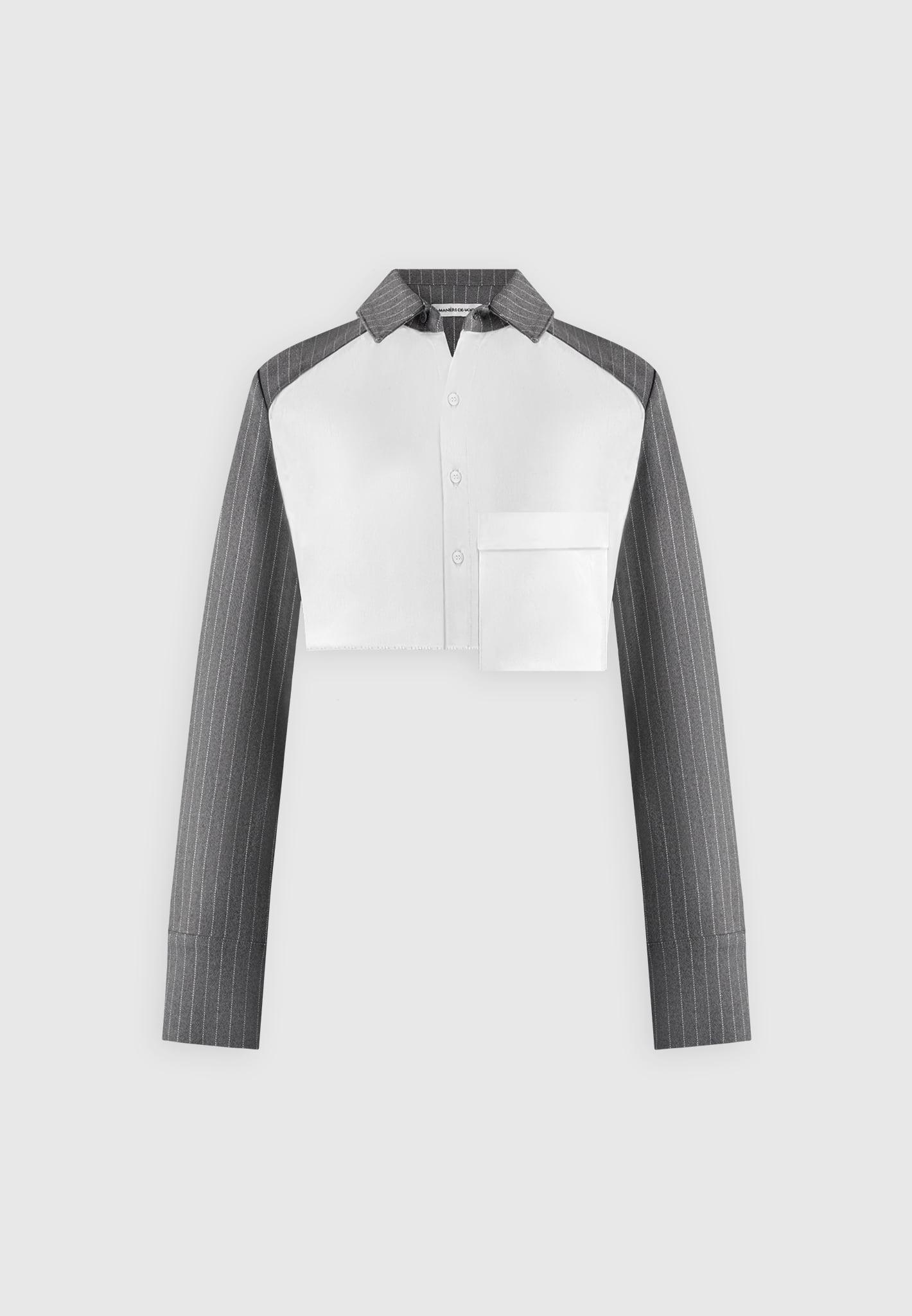 Bernadette - Pinstripe Contrast Cropped Shirt - Grey Female