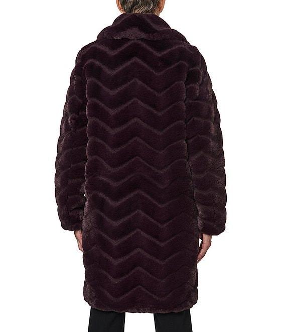 From Bernardo, this coat features: Faux fur fabrication Single breasted silhouette Notch collar neckline Long sleeves Angled welt pockets Midweight Oversize fit Fully lined Straight hemline Button front closure Approx. 37" length Polyester; lining: polyester Dry clean Imported.