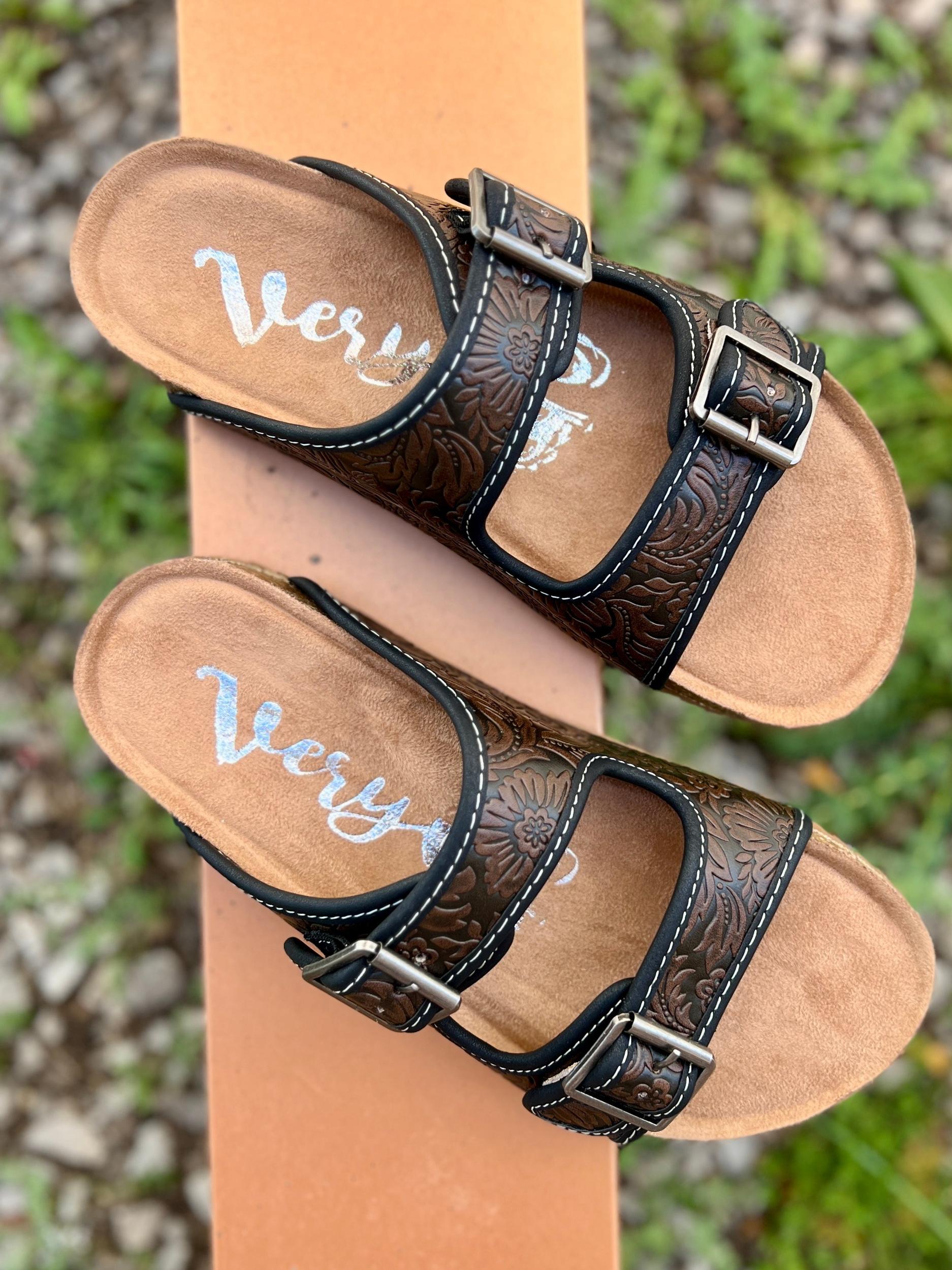 Treat your feet to a touch of luxury with these Berry Comfort Dark Chocolate Sandals! Featuring a double strap and a intricately tooled floral pattern, these stylish sandals will step up any outfit - not to mention their super comfort! Slip into these black chocolate leather gems and make heads turn!