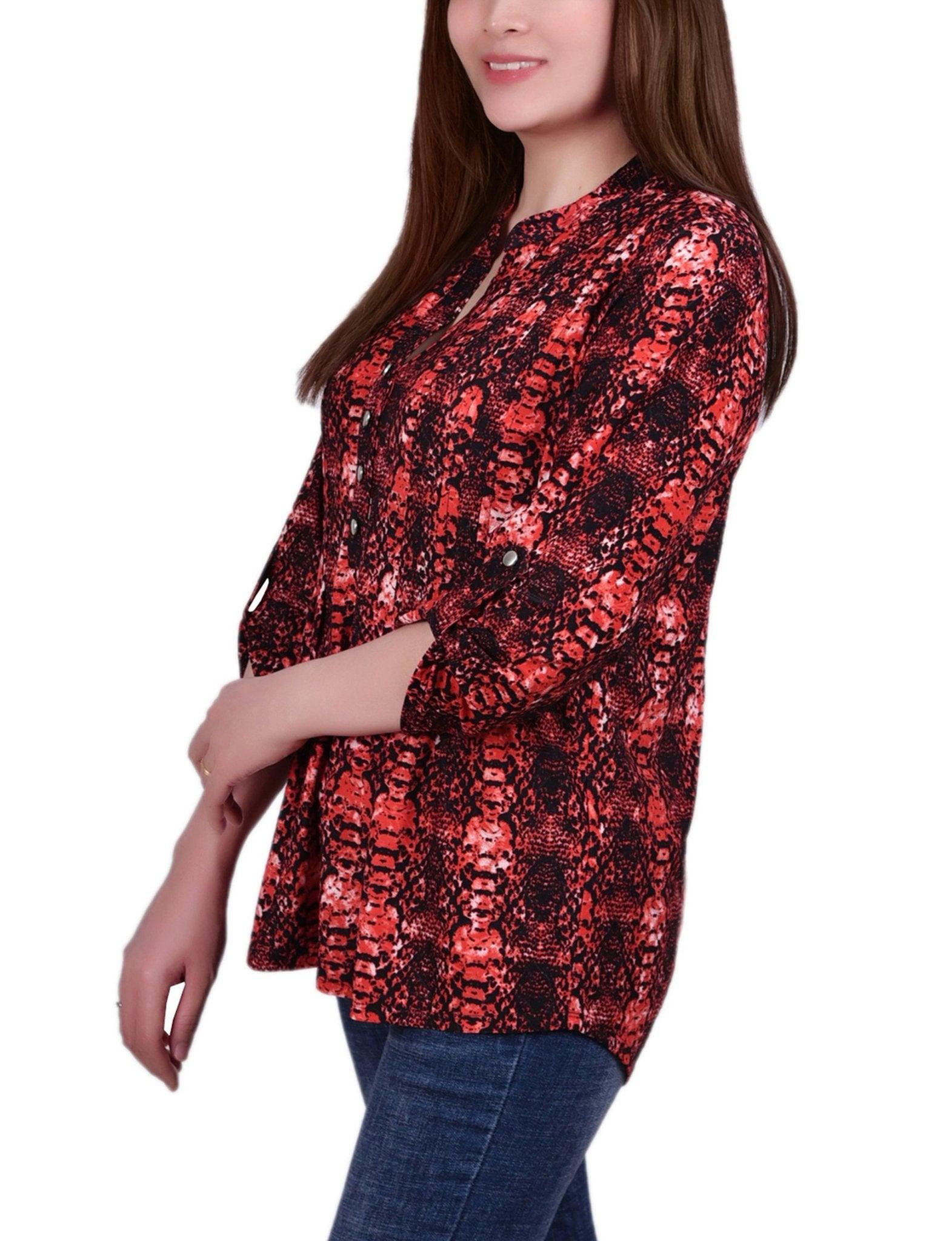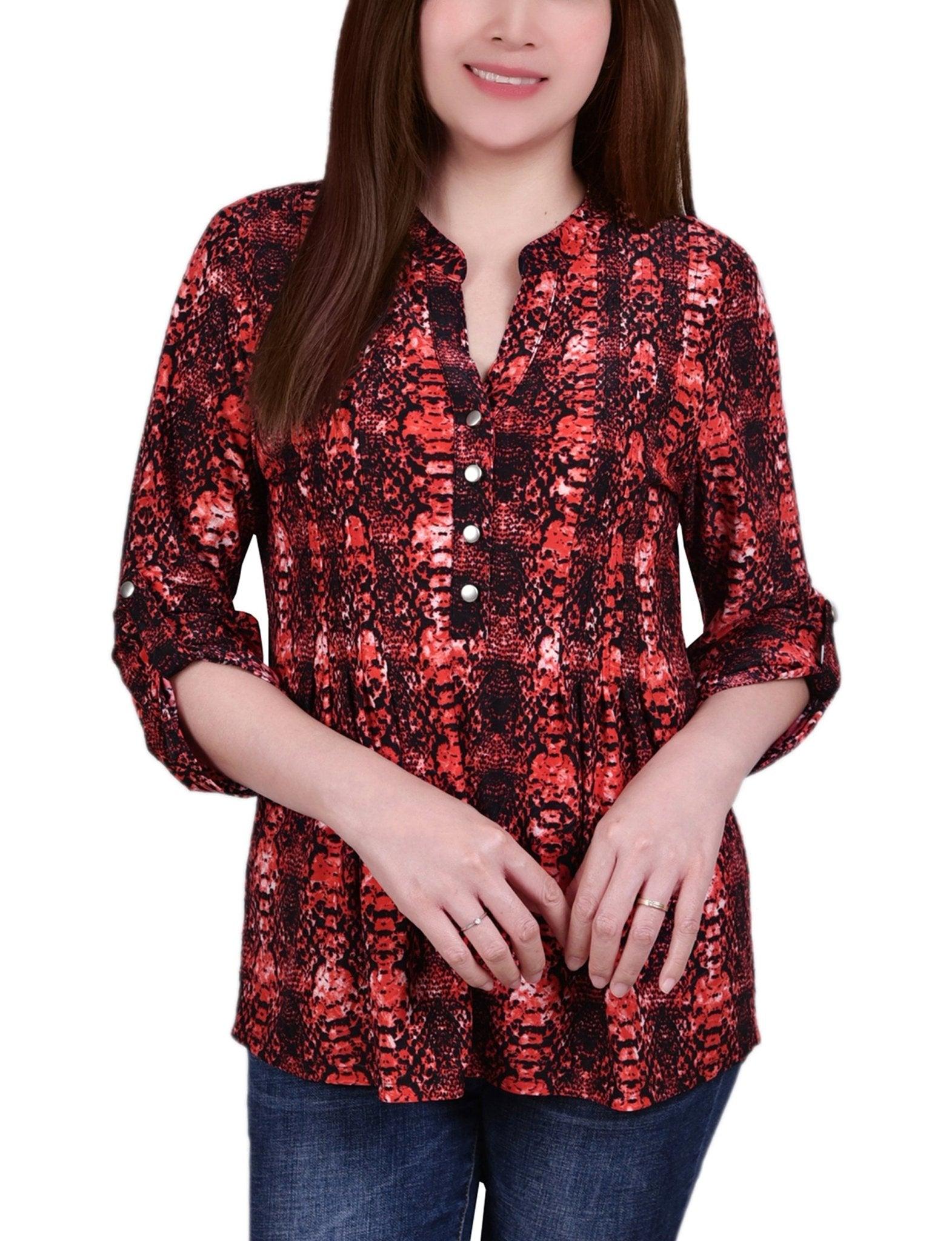 Red Milaflor 3/4 Sleeve Roll Tab Y Neck Top
