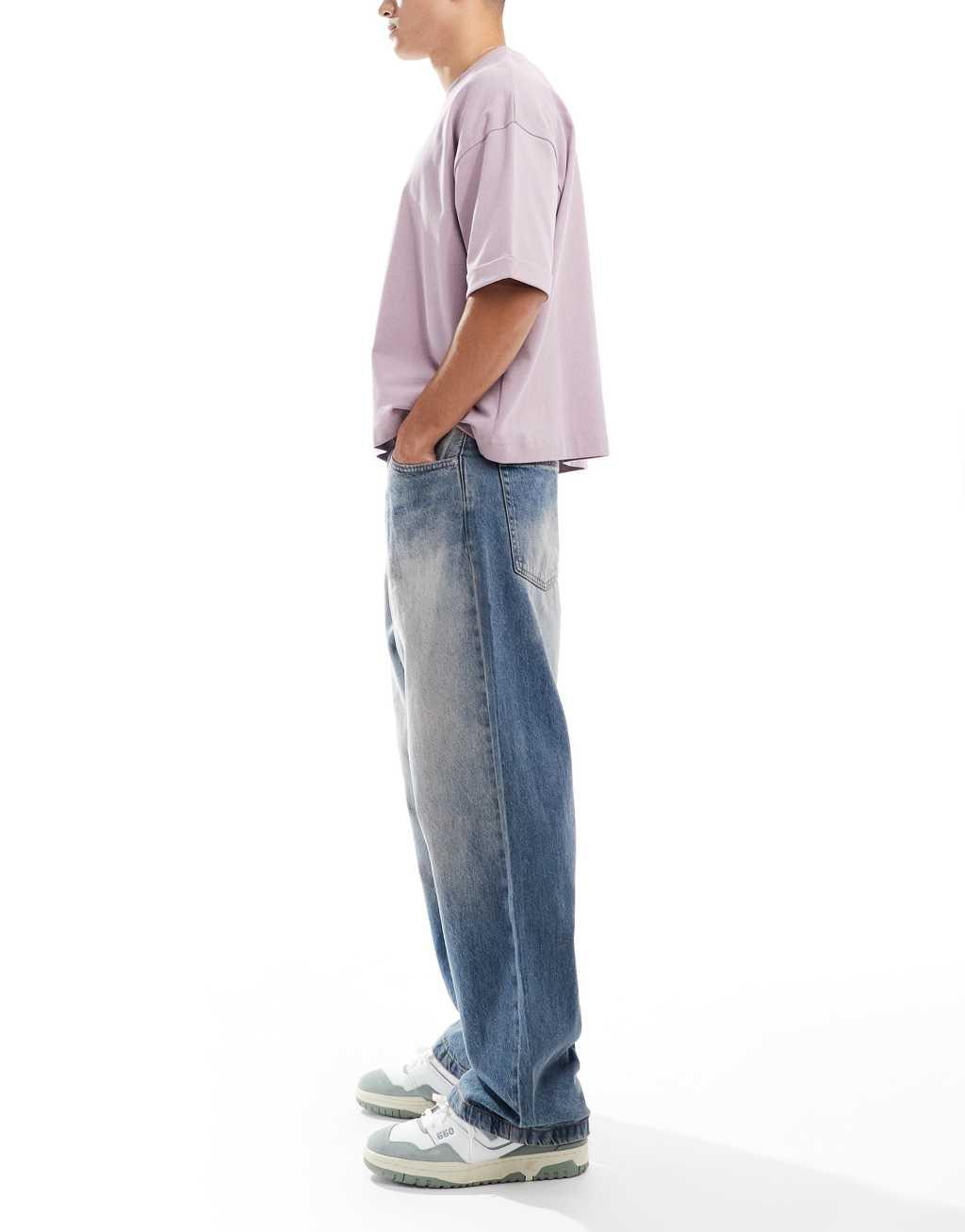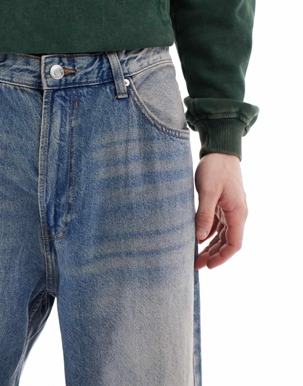 Bershka baggy fit jeans in washed blue