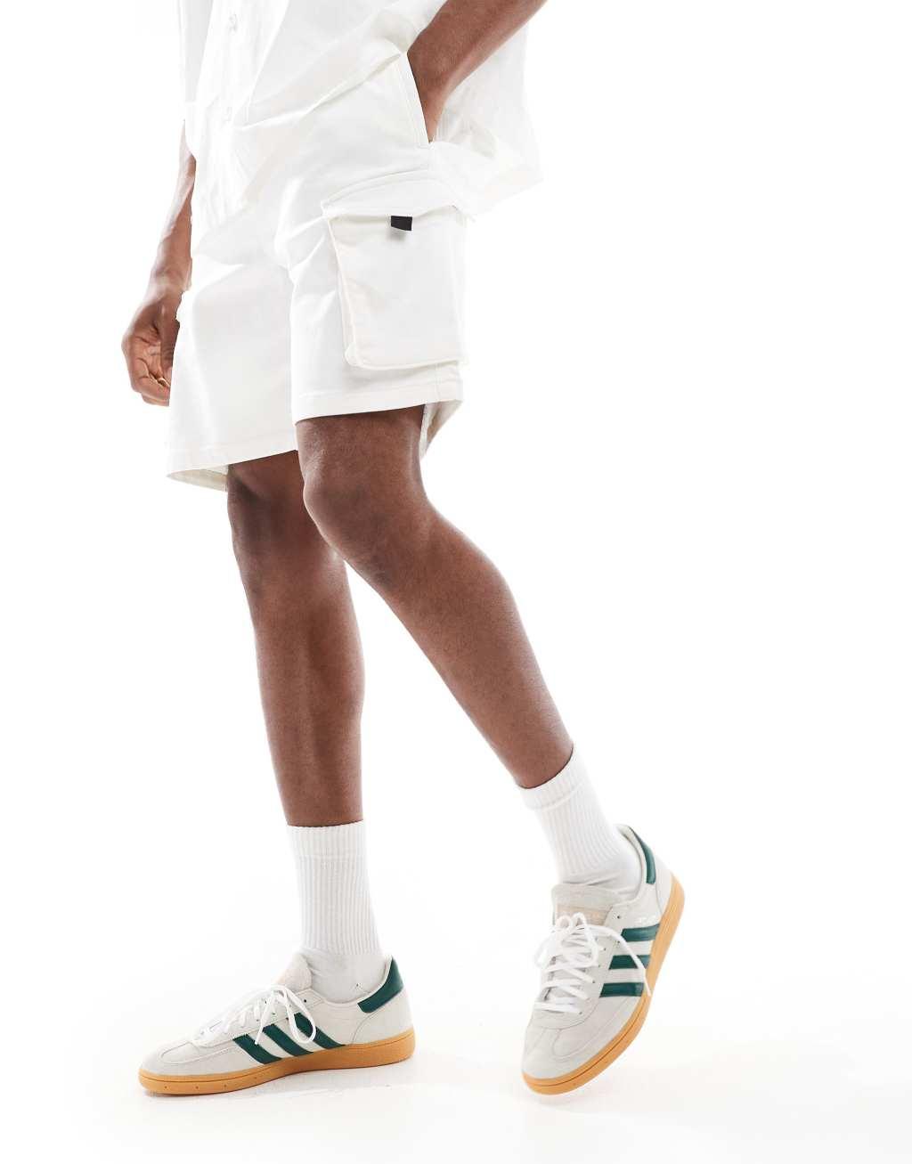 Bershka cargo pocket shorts in white
