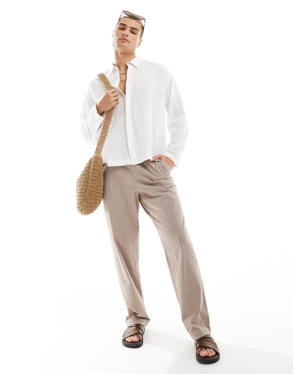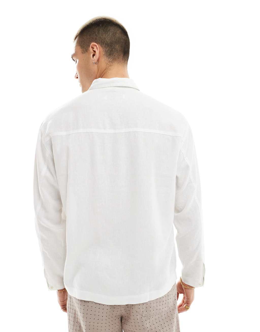 Bershka linen rich long sleeve shirt in white