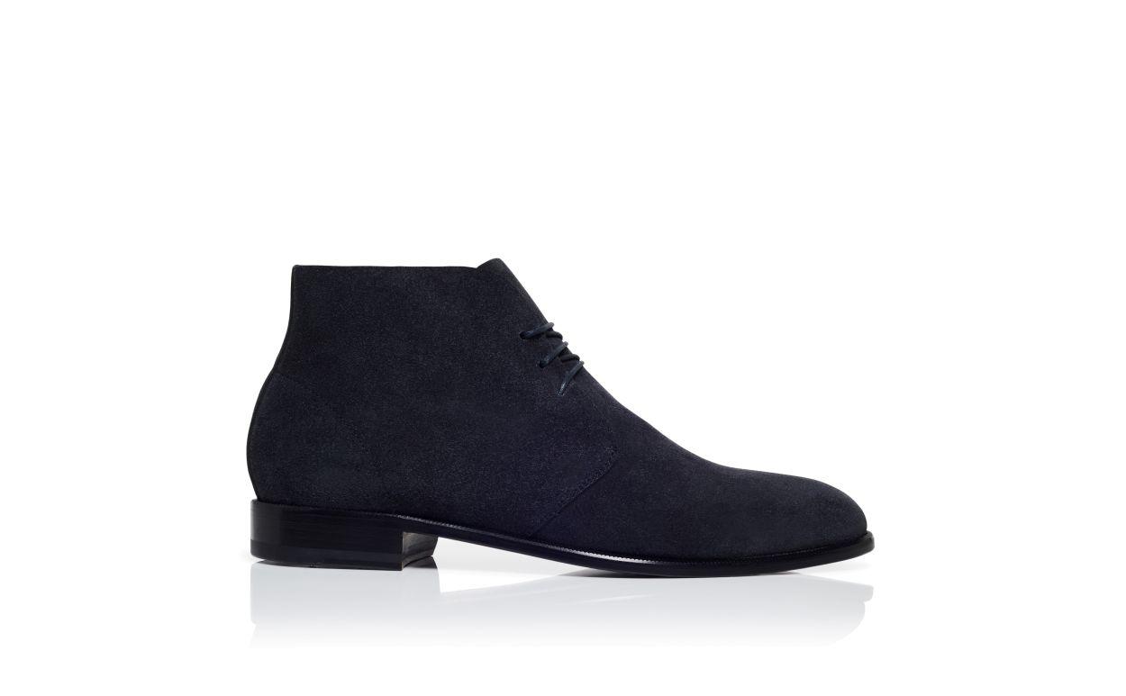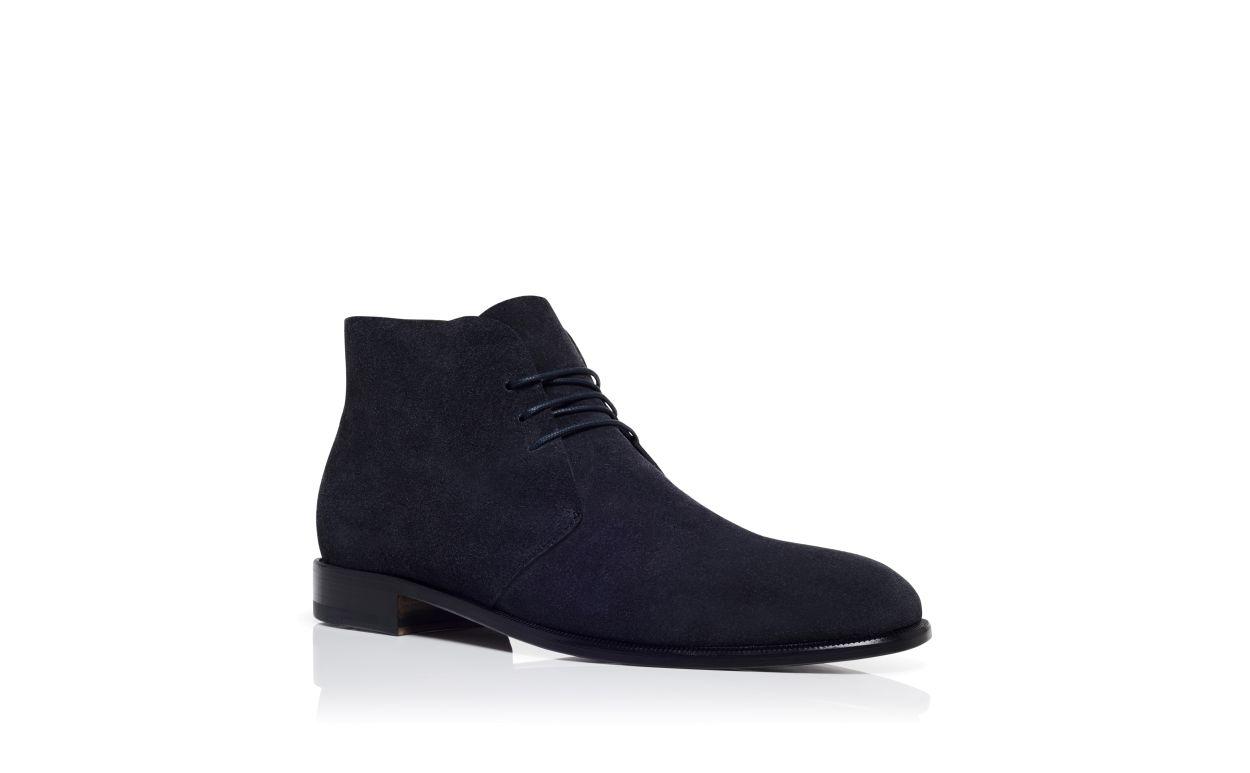 BERWICK Navy Blue Suede Lace-Up Ankle Boots