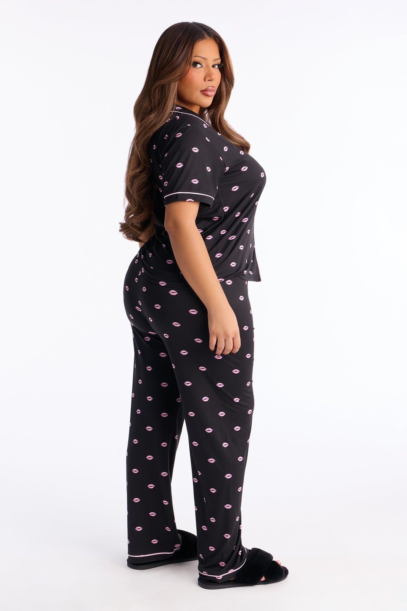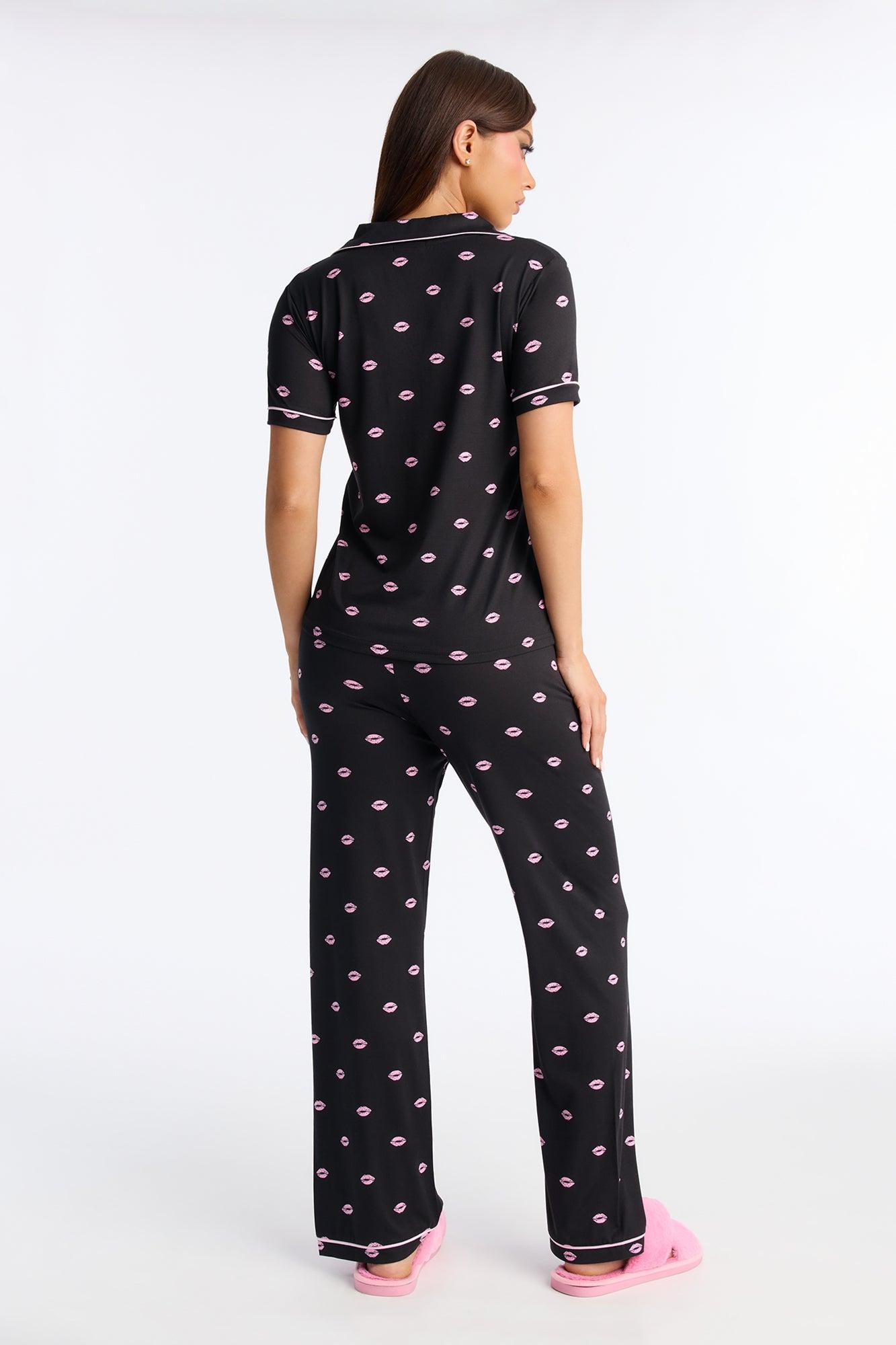 Besitos Short Sleeve PJ Pant Set - Black/Pink Female