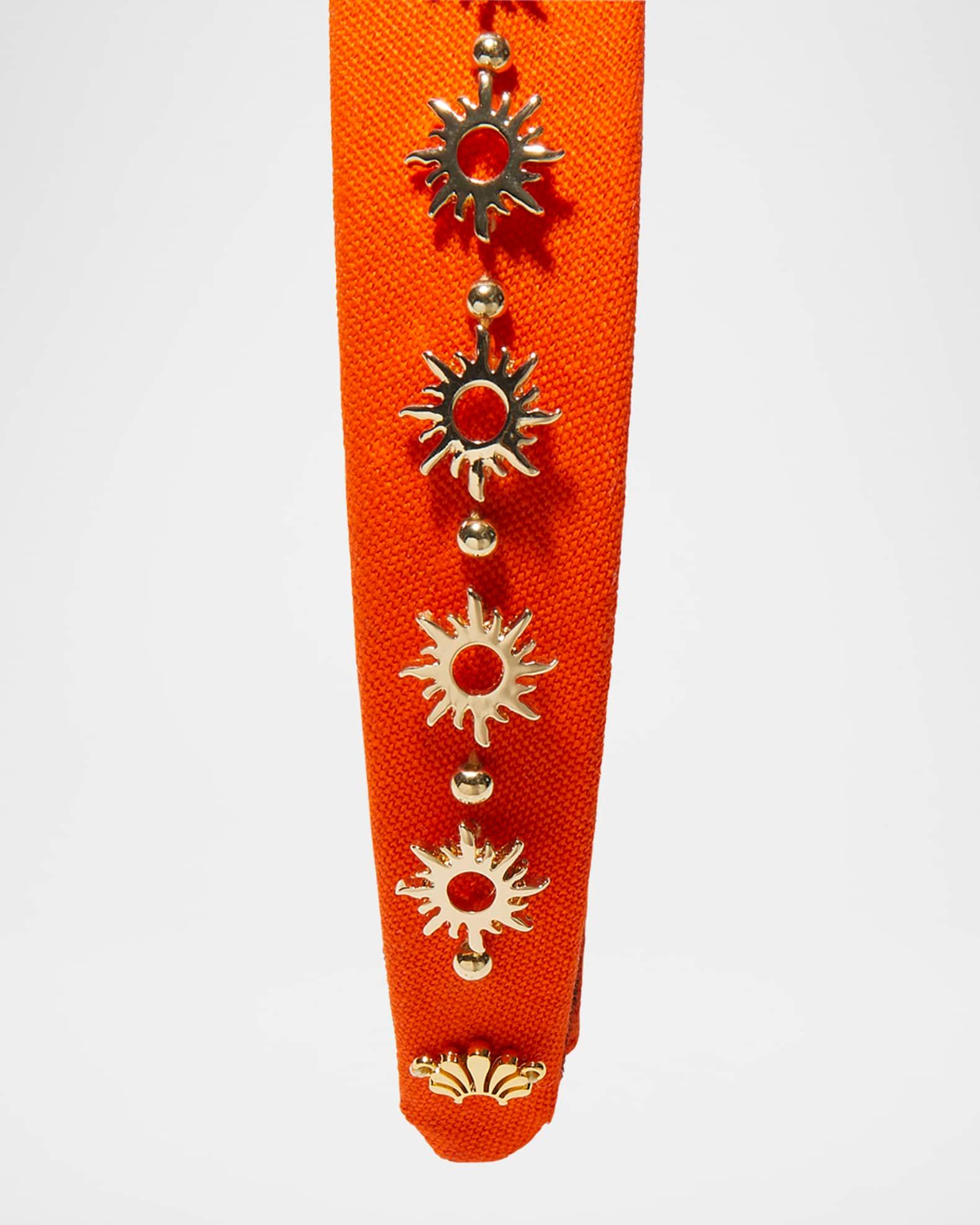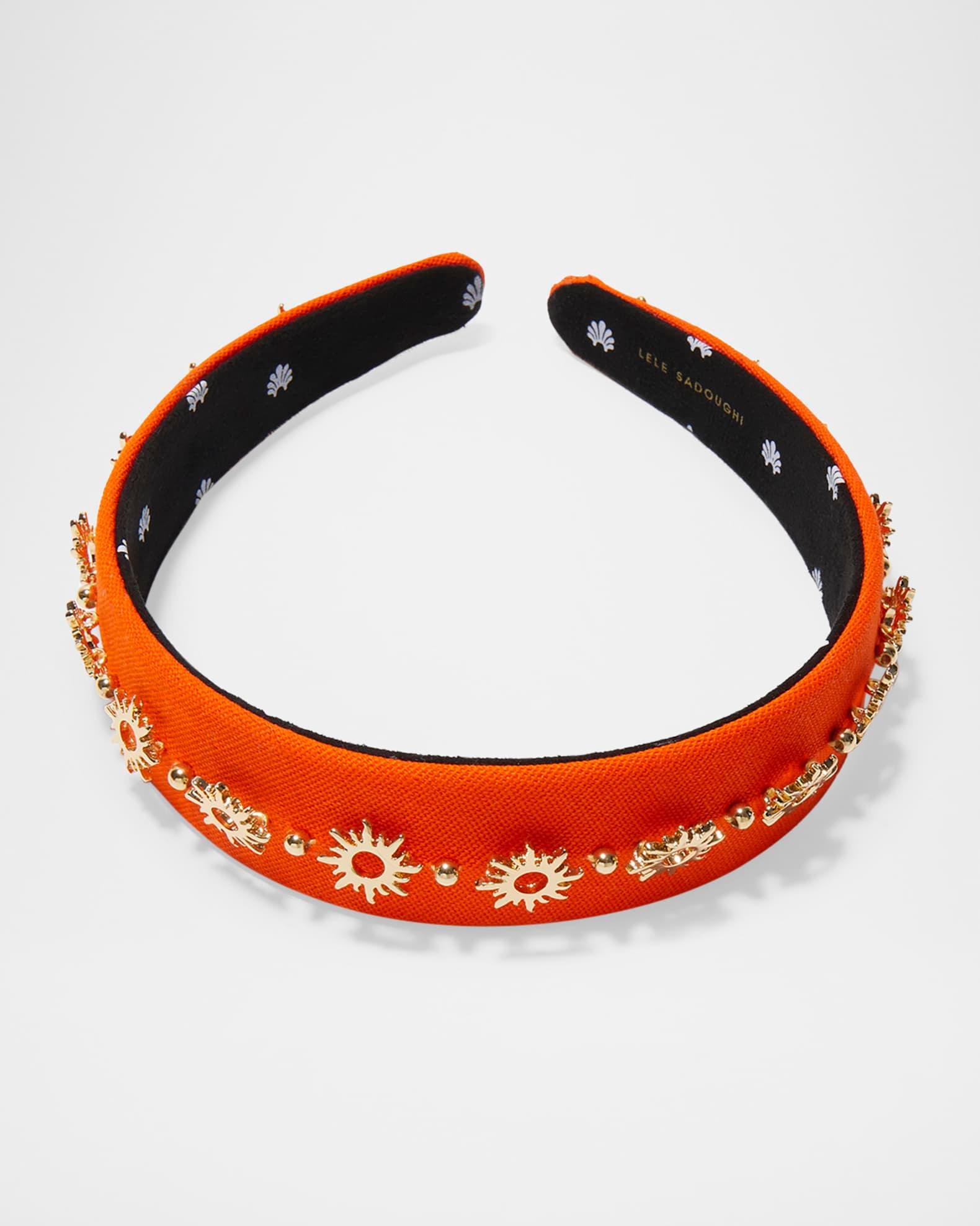 Inspired by Carolyn Bessette's iconic style, the Lele Sadoughi "Bessette" woven cotton headband features hand-embellished 14K gold-plated beads and sun charms Trademark logo charm One size fits most Includes a custom cloth pouch Cotton/14-karat gold-plate Spot clean Imported
