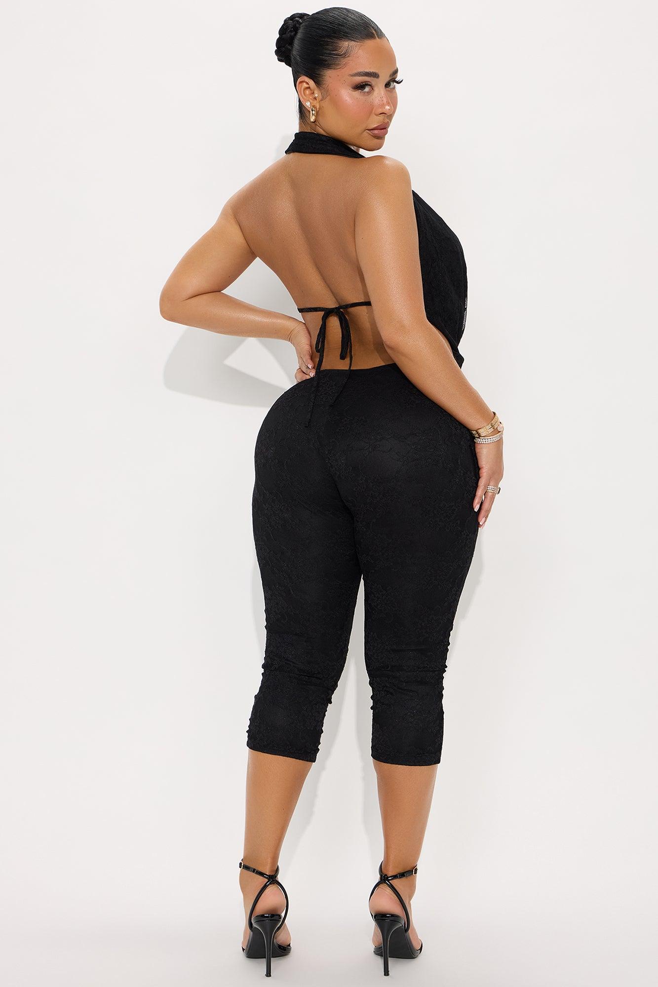 Best Bahavior Lace Capri Jumpsuit - Black