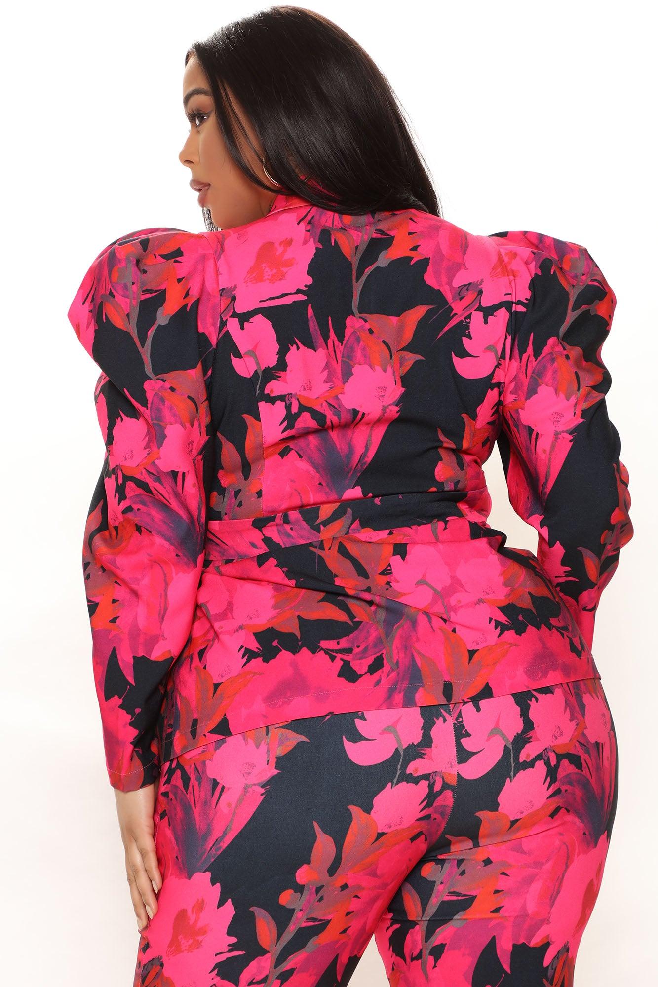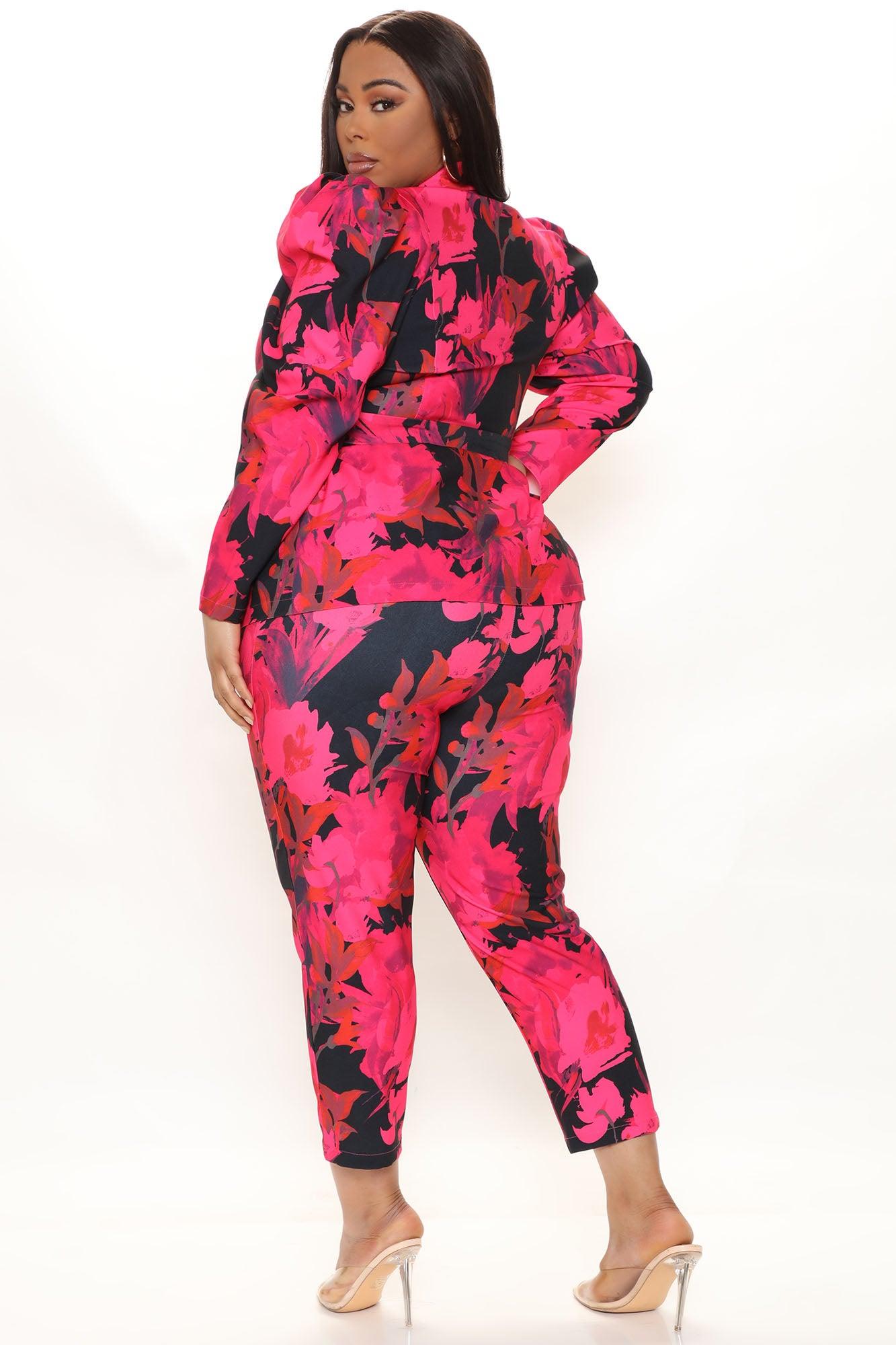 Available In Pink/combo. Floral Pant Set Double Breasted Blazer Puff Sleeve Belted High Rise Pant Pockets Zip Fly Straight Leg Moderate Stretch Disclaimer: Print Placement Will Vary 100% Polyester Imported California Proposition 65WARNING: Cancer and Reproductive Harm - www.P65Warnings.ca.gov.