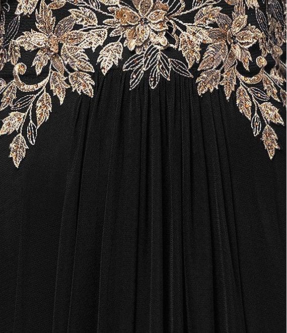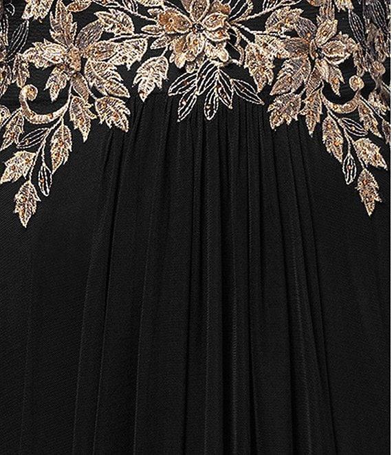 Betsy & Adam Long Power Mesh Long Sleeve Metallic Applique Dress
