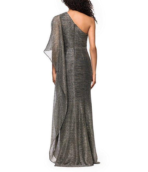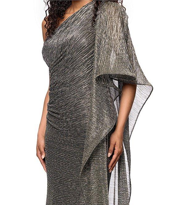 Betsy & Adam One Shoulder Metallic Ruched Gown
