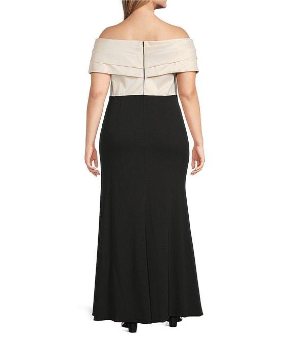 From Betsy & Adam Plus, this dress features: Scuba crepe fabrication Off-the-shoulder neckline Short sleeves Fit and flare silhouette Lined Back zip closure Approx. 62" in length from high point shoulder Polyester/spandex Dry clean Imported.