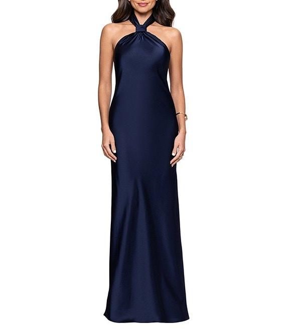 Betsy & Adam Satin Knot Halter Neck Sleeveless Sheath Dress