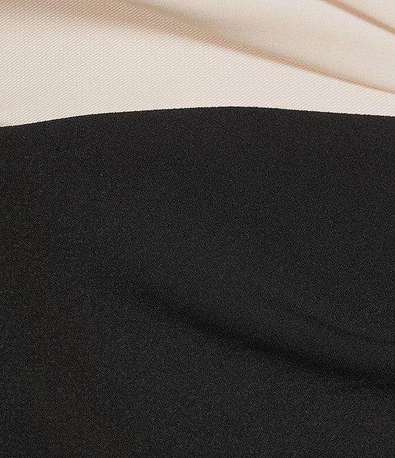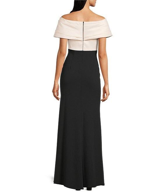Betsy & Adam Scuba Crepe & Mikado Off-The-Shoulder Pleated Bodice Mermaid Gown